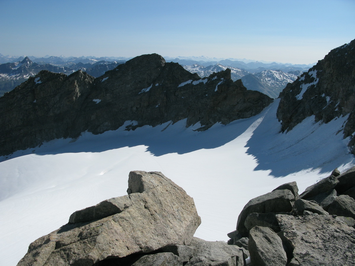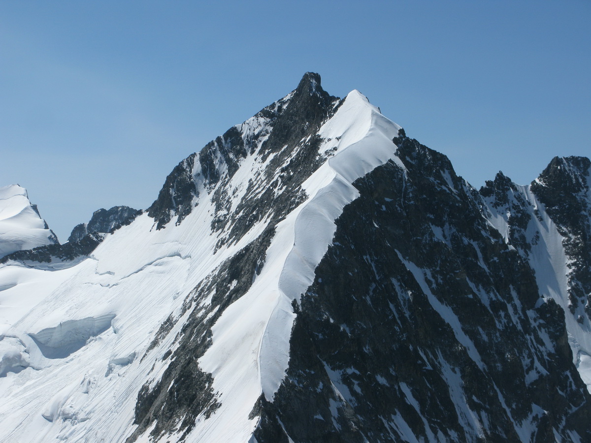 Z vrcholu Morteratschu sú celé Berninské Alpy ako na dlani, ale najkrajší a najdôležitejší výhľad je práve na Biancograt a Berninu. Medzi fotkami si nájdete aj Piz Palú (3900m). Ďalší základný berninský vrchol...