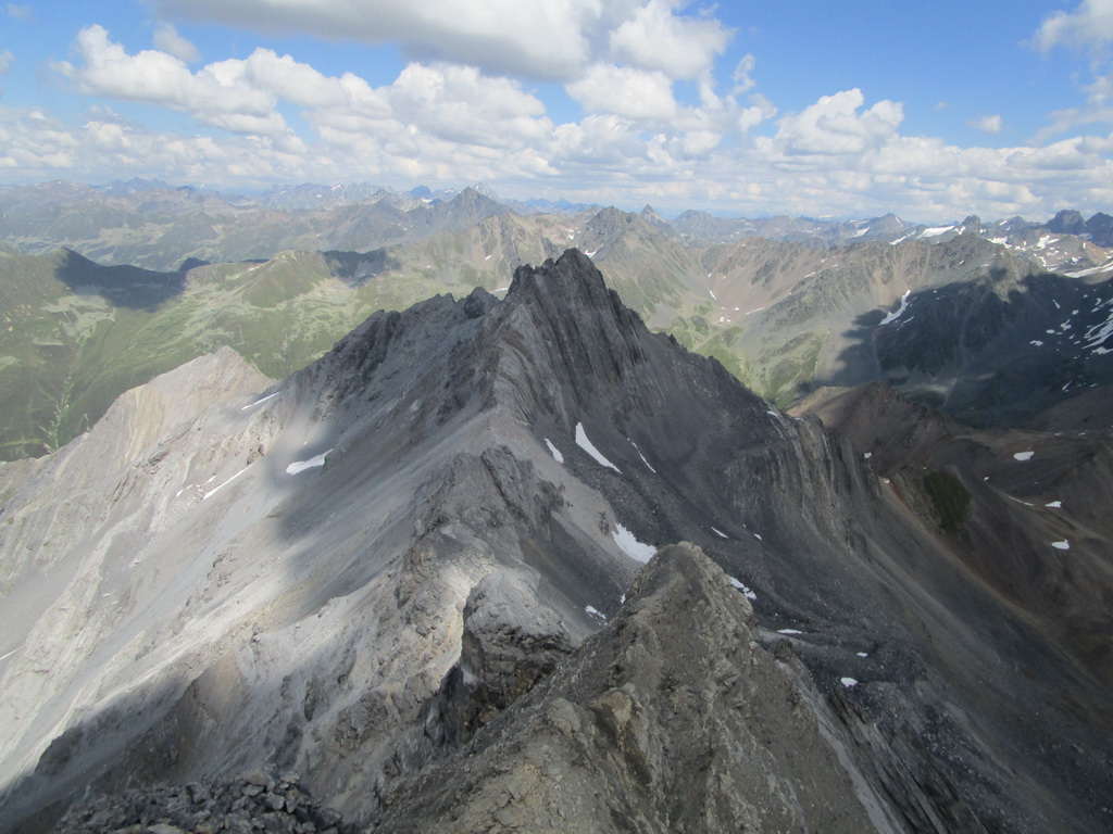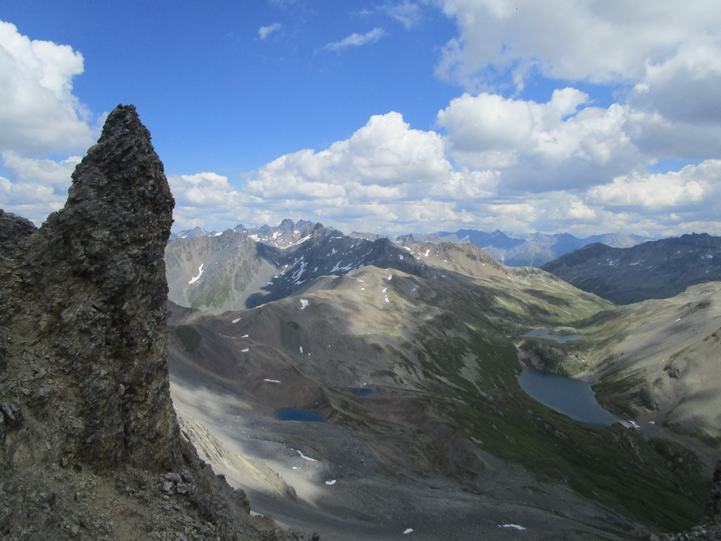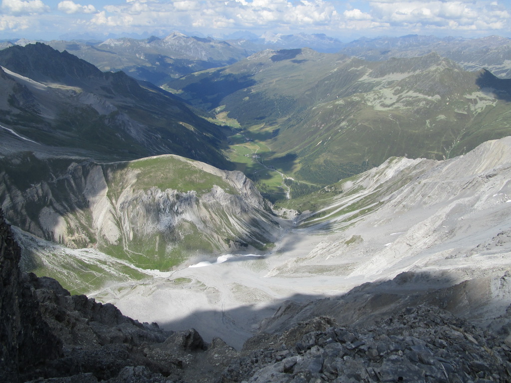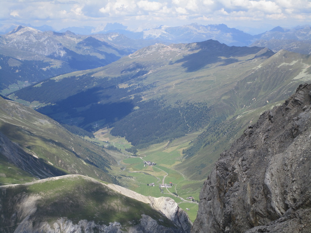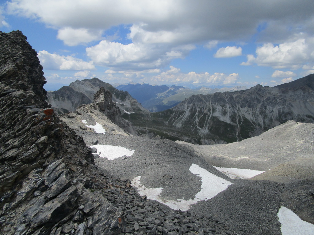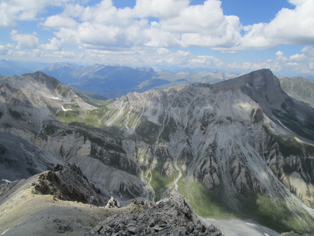 Krásny výstup s ešte krajším záverom. Úžasné výhľady na všetky strany. Zhora sa pozerám na Sertigdorfli a vzdialený Jakobshorn, odkiaľ som nedávno zjazdoval prvú časť bajkového Epicu. Na vrchole nachádzam vrcholovú knižku, za posledný rok sú tam iba štyri zápisy...