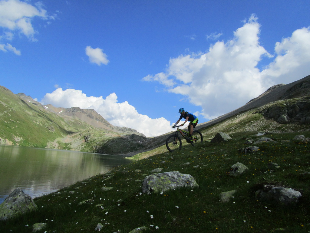 Pri bajku sa prezliekam a prezúvam naspäť do bajkerského. Po výstupe na pre mňa doteraz neznámy kopec bude nasledovať zjazd rovnako neznámou dolinou. Nečaká ma totiž priamy návrat domov ale chcem urobiť ešte okruh cez Keschhutte.