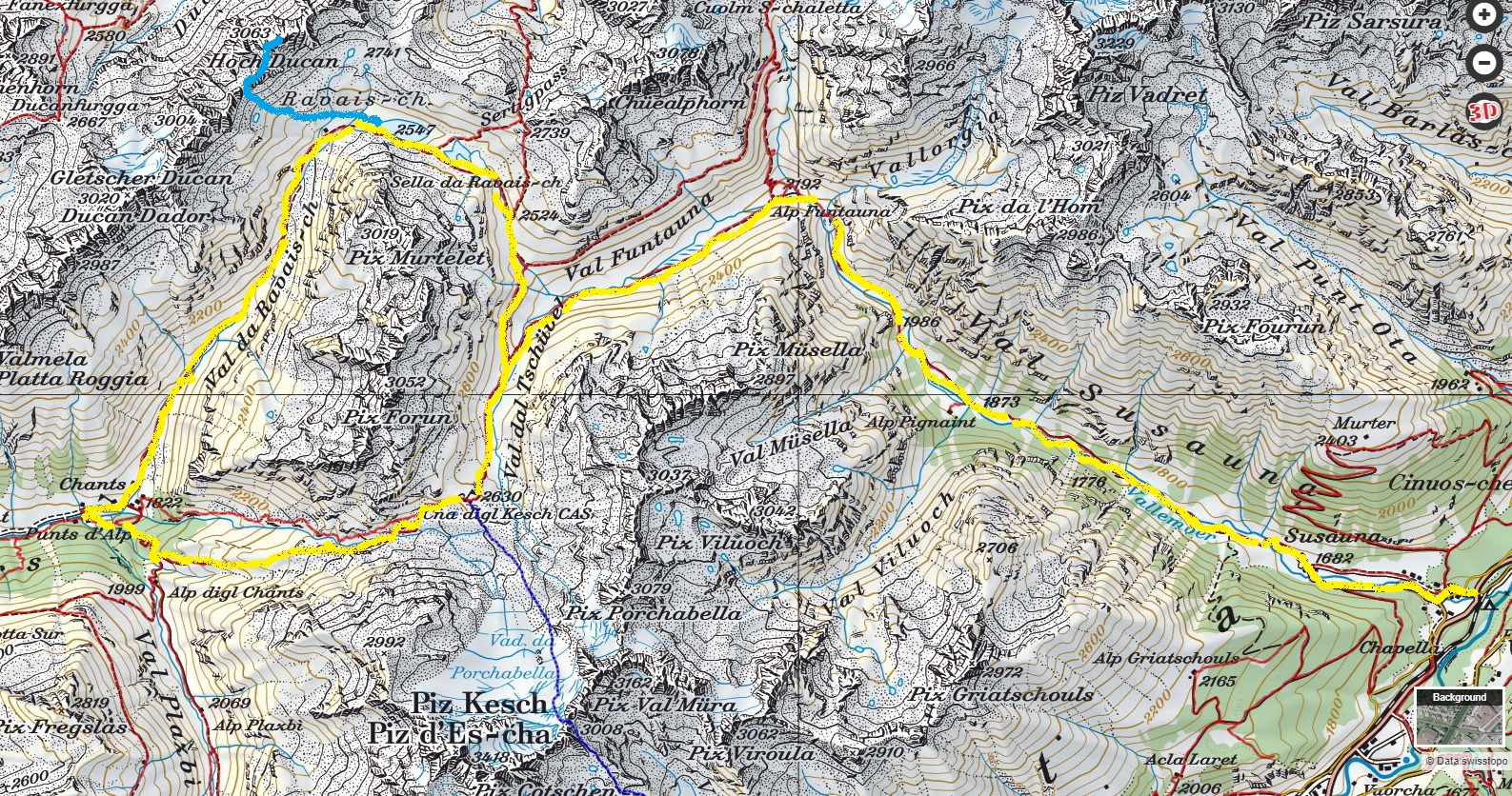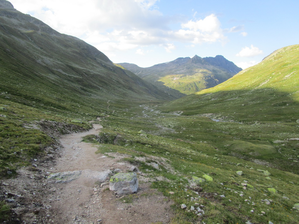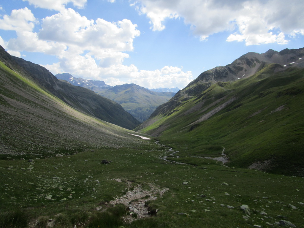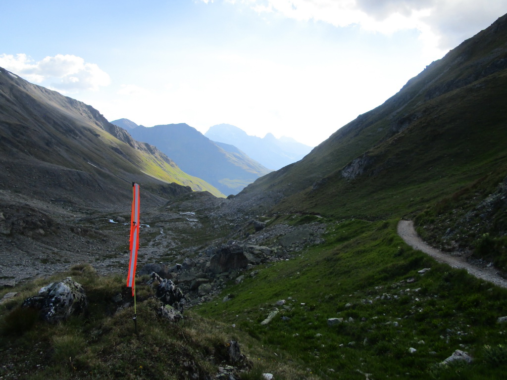 Vyrážam z parkoviska pri hlavnej ceste v ústí doliny Val Susauna. Už tretíkrát toto leto naberám výšku touto krásnou a dlhou dolinou. Tento raz na jej konci neodbočujem doprava smer Scalettapass, ale idem vľavo do Val Funtauna. Keby som pokračoval až na koniec, prídem k chate Kesch, ale ja odbočujem zase vpravo, smer Sertigpass. Pod sedlom pokračujem planinou tvoriacou veľké sedlo až ku jazeru Ravais.