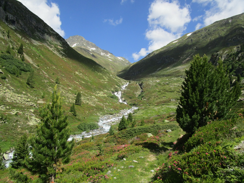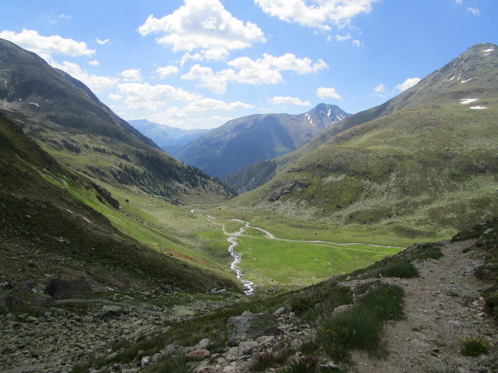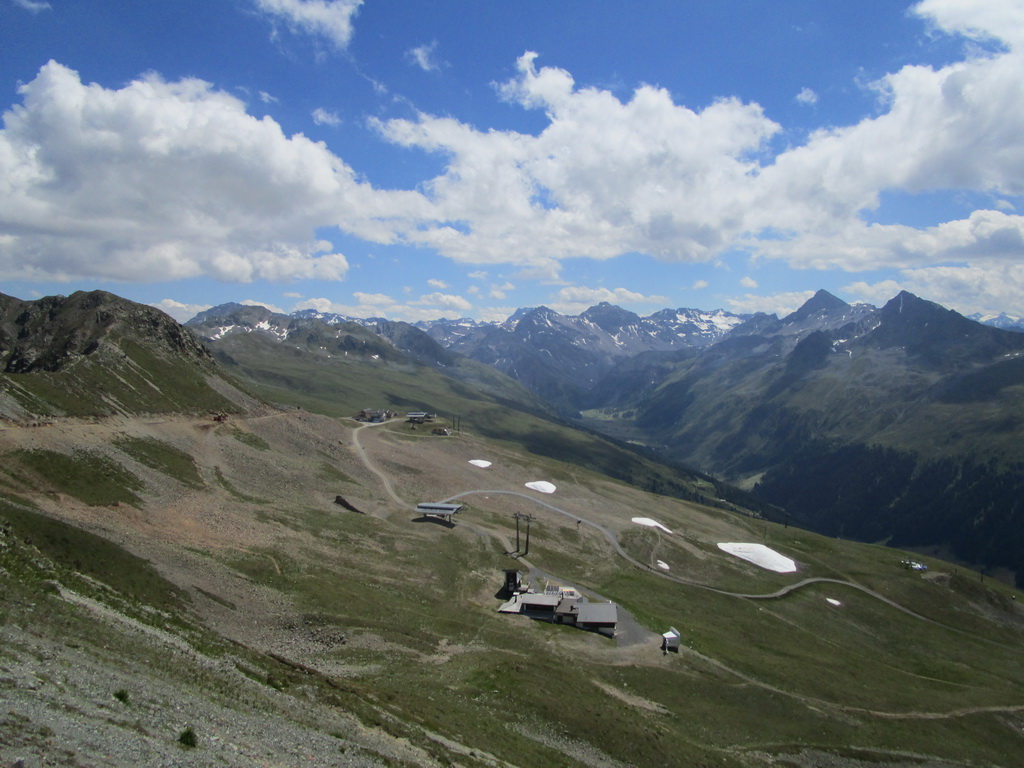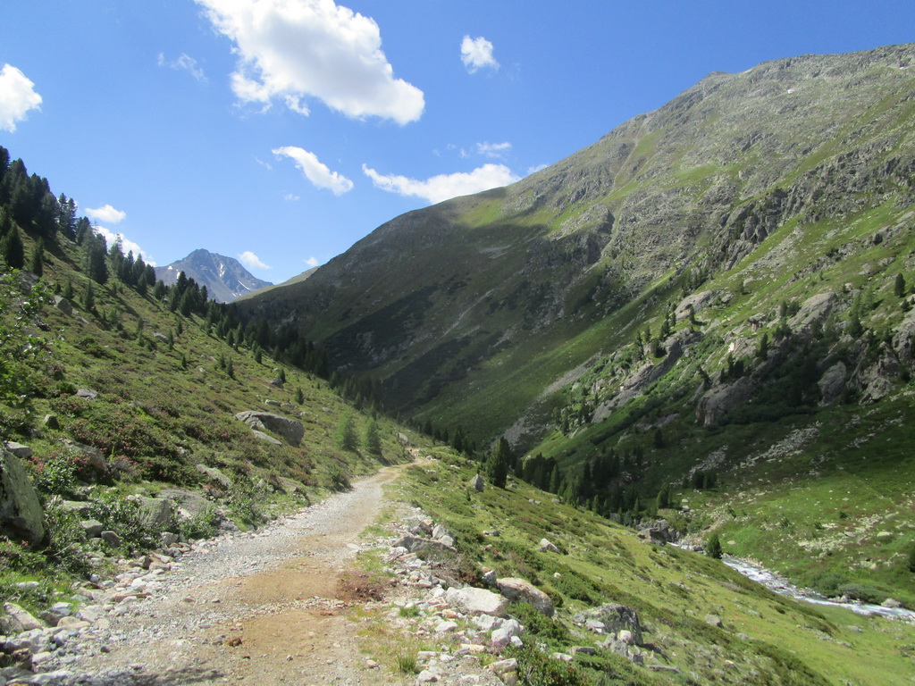 Parádny zjazd. Drsný, tvrdý, kamenistý, neupravovaný, ale zjazdný. Po celej dlžke 600-metrového prevýšenia jednoducho paráda. Dole sa napájam na asfaltku a po nej fičím dolinou až po Teufi. Tu sa odpájam z cesty dolinou a začínam tlačiť strmým, značkovaným chodníčkom. Podľa stôp vidím, že sa tu dole kopcom jazdí. Tvrdý a ťažký, kamenistý zjazd.