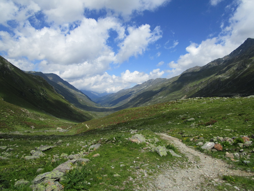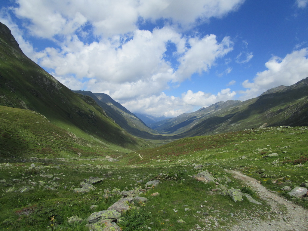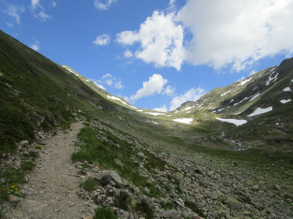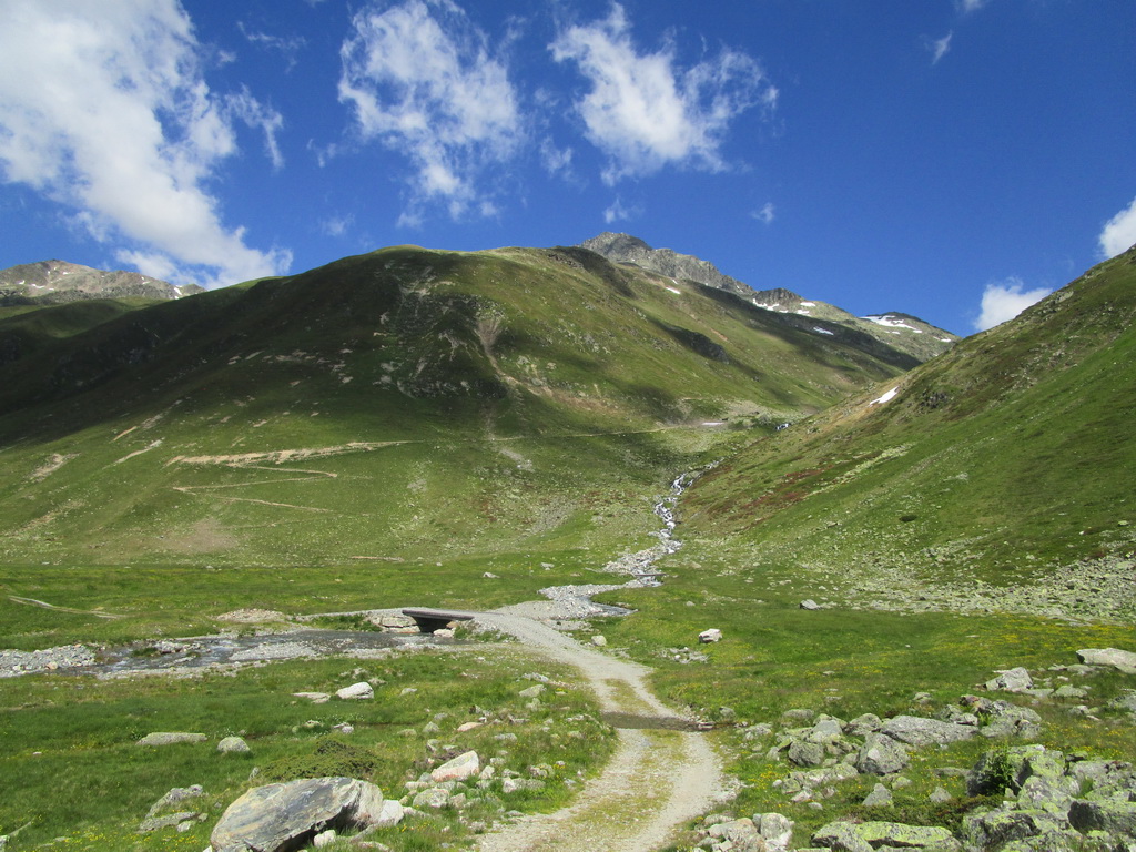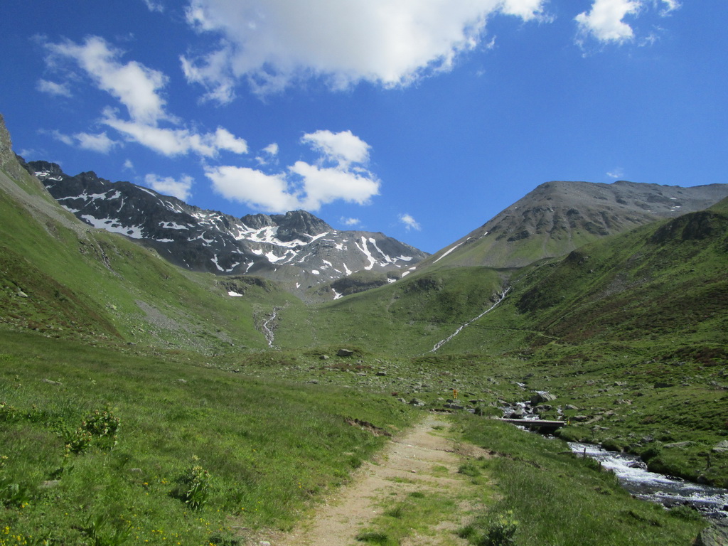 Odtiaľto začínam opäť stúpať dolinou smer Sertigpass. Dnes tretie a posledné stúpanie. Po kravín na bajku, potom už väčšinou tlačenka.