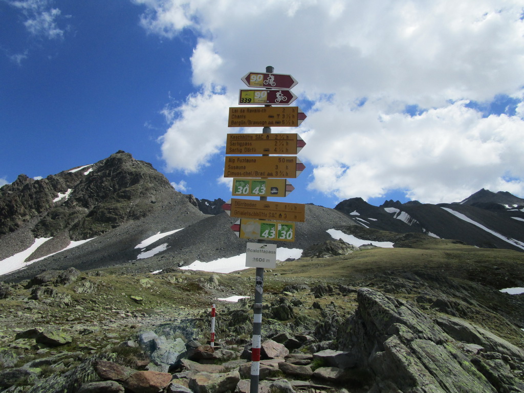 Horný Engadin: S-Chanf - Val Susauna - Scalettapass - Durrboden - Teufi - Jakobshorn - Sertigdorfli - Sertigpass - Val Funtauna - S-Chanf = 2780 v.m., 8:40 hod., 55 km