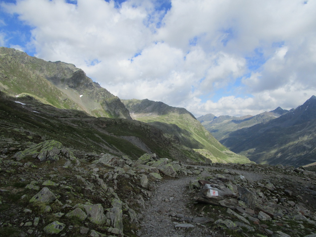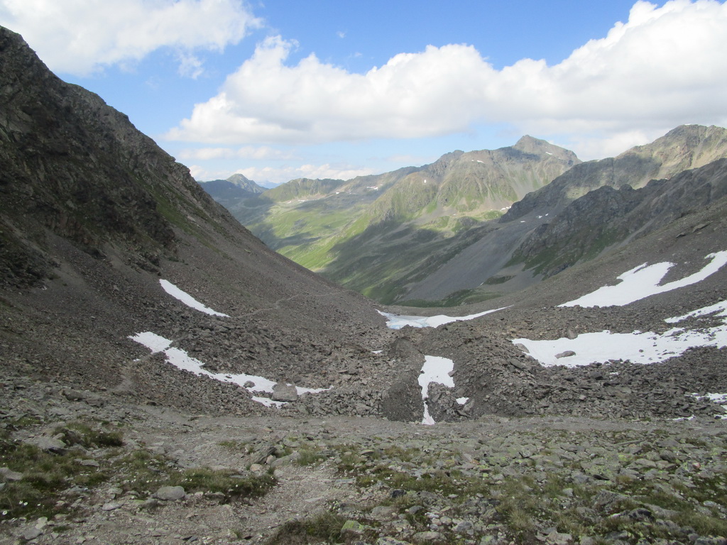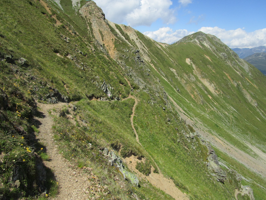 Chodníček na Sertig je miestami pekne spravený. Chvíľu aj nasadám na bajk. V závere je už ale riadna suť a veľké kamene. Tu by som musel zosadnúť aj cestou dole, ale ináč by to šlo takmer celé krásne zjazdovať.
