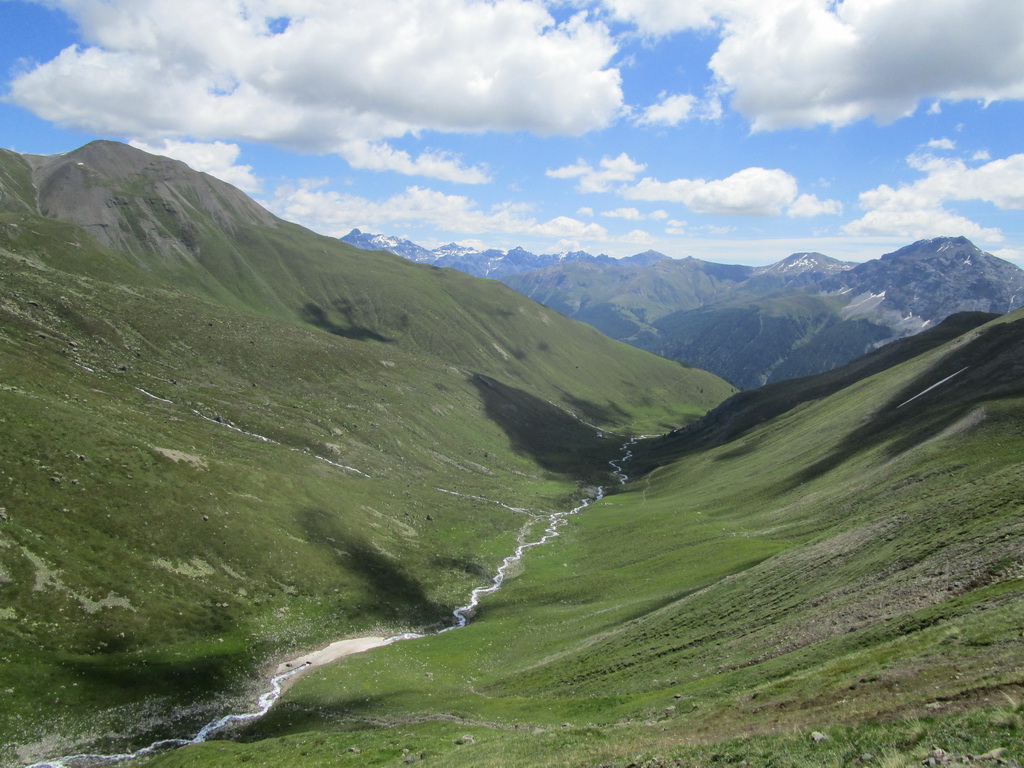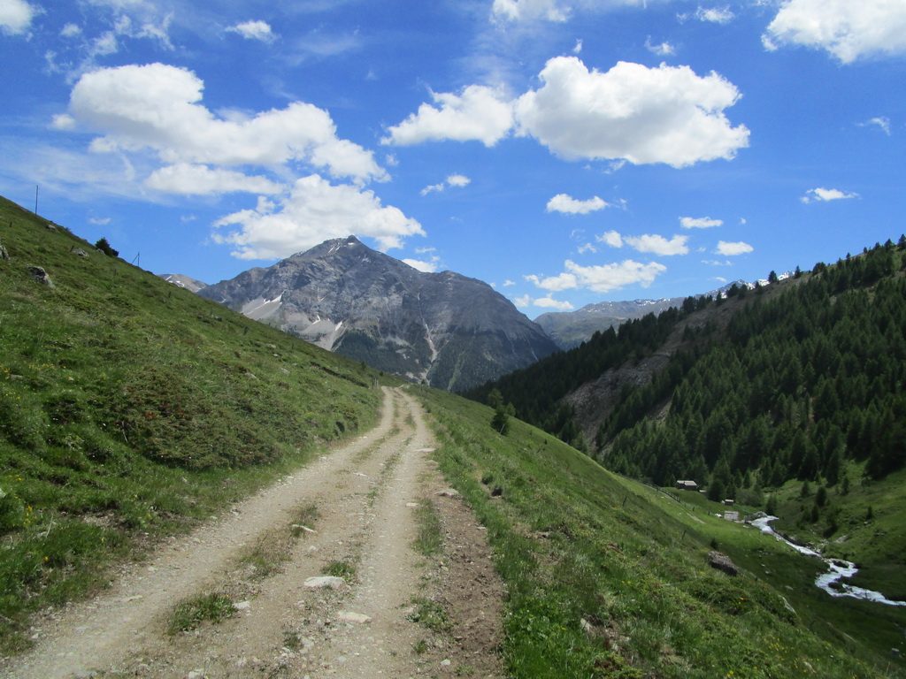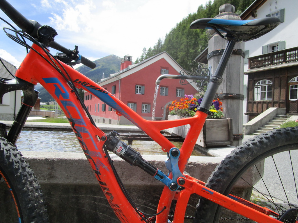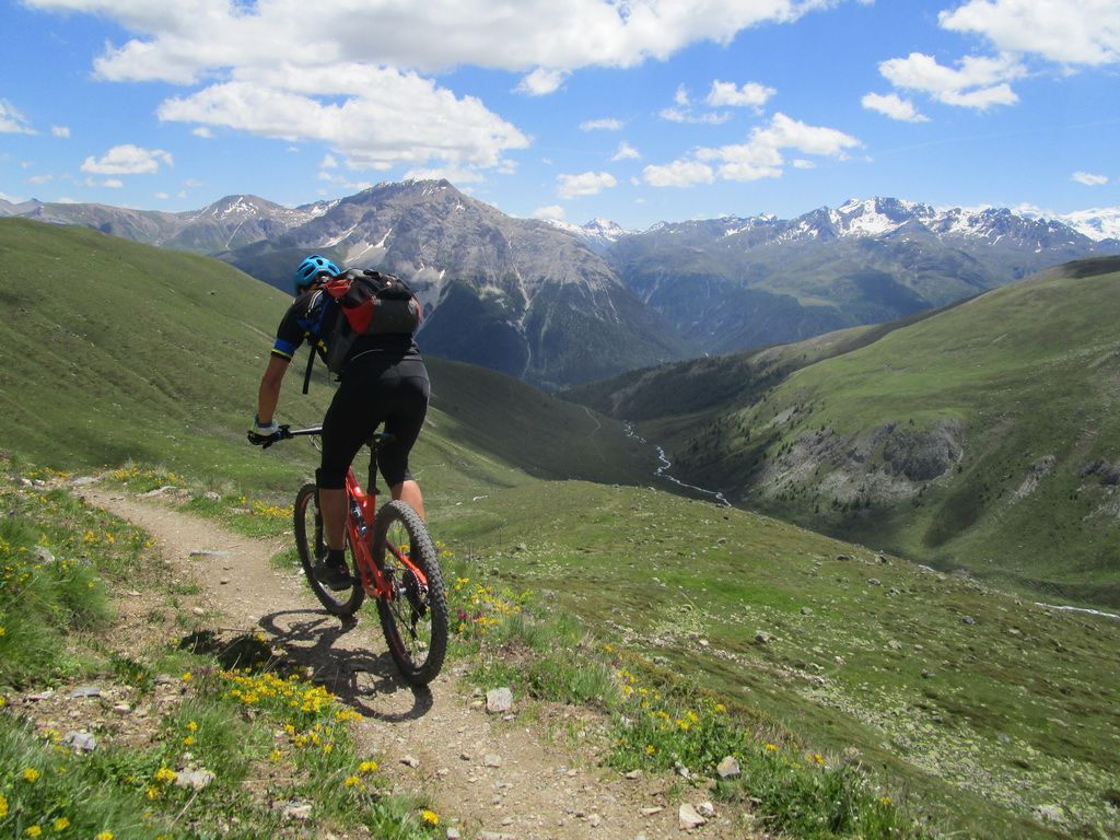 Vychutnávam si dlhý a pestrý zjazd. Striedajú sa tu všetky druhy terénu. Záverečné pasáže po rýchlejších lúkach a napájam sa na štrkovú cestu, ktorá ma privedie až do osady Madulain. Odtiaľto už pokračujem cyklotrasou do neďalekého La Puntu a uzatvorím pekný, asi poldňový okruh.