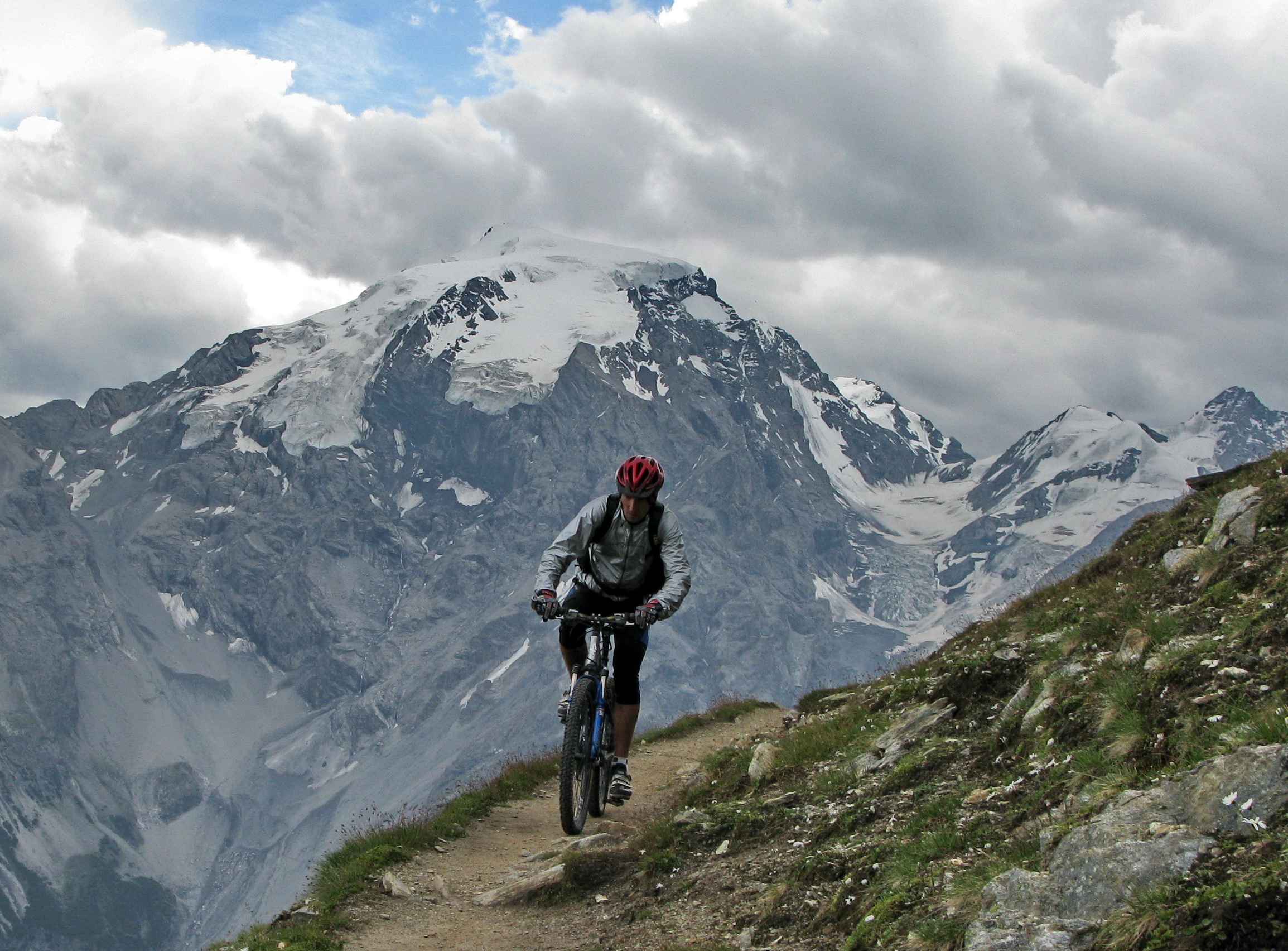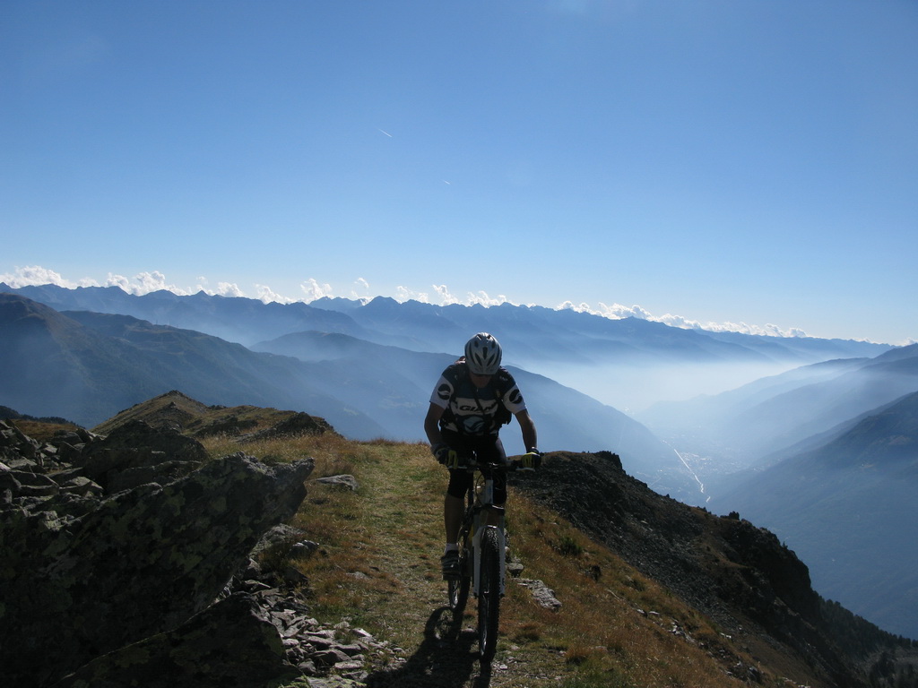 Postupne som sa odvažoval na stále náročnejšie kúsky. Chcel som, aby bol na fotke popri peknej panoráme aj pohyb, pokiaľ možno čo najextrémnejší. Tento kúsok sa mi podaril vo Val Trela neďaleko Livigna. Túto fotku cvakol ten, čo sa tam dolu spúšťa na bicykli. Podarila sa na druhý pokus. Žiadna iná fotografia (z tých čo som v ten deň urobil) neodráža presnejšie tie úžasné pocity z jazdy po supertrailoch.