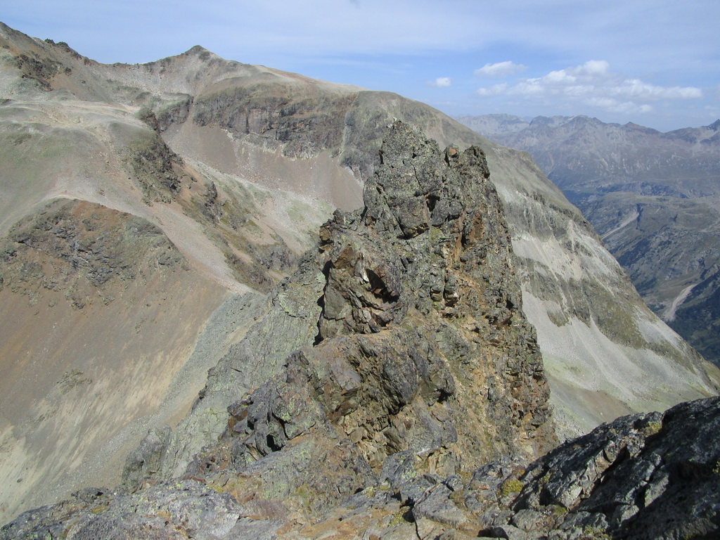 Prechádzam cez Piz San Gian, oba vrcholy Surlej a blížim sa k vrcholu dnešného dňa: Munt Arlas. Kým predošlé vrcholy som poznal iba zo zimy, ten nasledujúci už som bol viackrát preskúmať aj v lete. Čaká ma náročný skalný hrebeň, exponované lezenie tak do trojky, množstvo voľných kameňov. Zostup poznám dobre, preto aj ostávam kľudný keď začnem liezť po stále viac a viac zvetranom hrebeni. Prichádzam k vežičke, ktorá dáva tušiť problémy už z diaľky.
