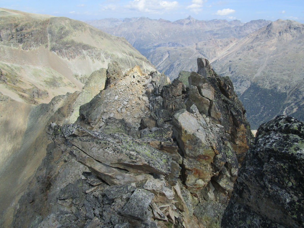 Prichádzam na vrchol. Zostup mám nacvičený a teším sa, že problémy sú za mnou. Na tento hrebeň sa už vracať nebudem, raz stačilo. Nasleduje koncentrácia pri zliezaní z vrcholu a prichádzam k chate vo Fuorcla Surlej.
