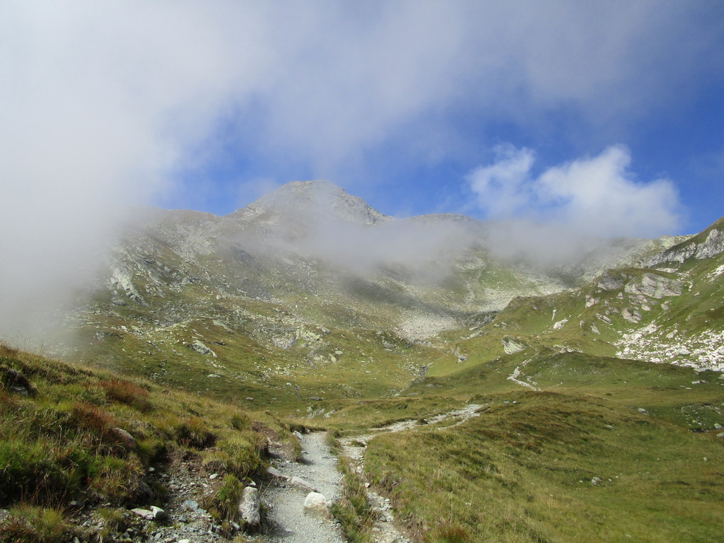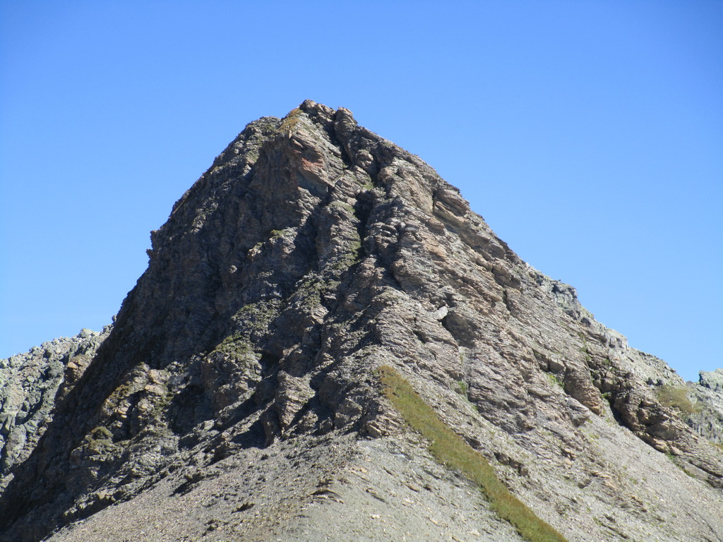 Vrchol Grevasalvas. Raz v zime som už na ňom stál. V lete tu vedie z druhej strany značka. Stretávam pár turistov. Nezdržujem sa a pokračujem hrebeňom. Čaká ma druhý vrchol v hrebeni s názvom