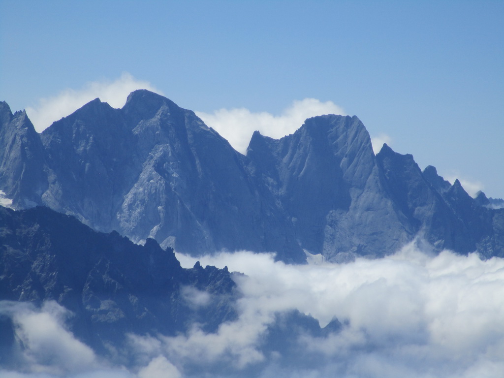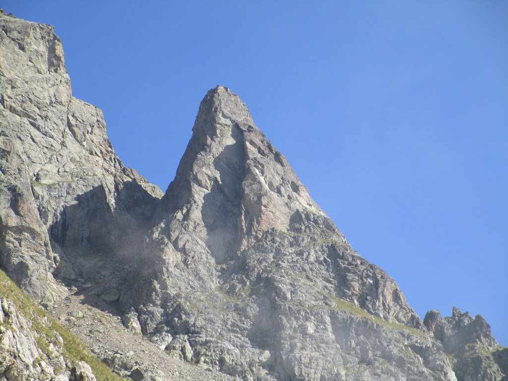 Blížim sa ku JV stene, je to strmé a rozbité, netuším vôbec či to pôjde. Nemám žiadne info. Nevidím ani mužíkov. Vyberám si trasu a postupujem. Vyzerá, že to pôjde. Takéto túry sú pre mňa tým pravým alpinizmom, v rámci mojich možností. Leziem hore pekným exponovaným hrebienkom a zostup si zároveň plánujem vedľajším žlabom. Vtom zbadám kozorožca ako stojí nado mnou a pozoruje ma. Odfotím si už len jeho chrbát ako zdrhá preč. Dobrá správa, takže tam bude ľahší terén. Vyleziem hore a nakuknem do steny z ktorej som počul buchot padajúcich kameňov.