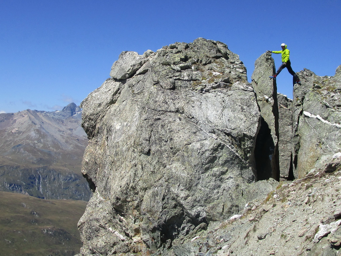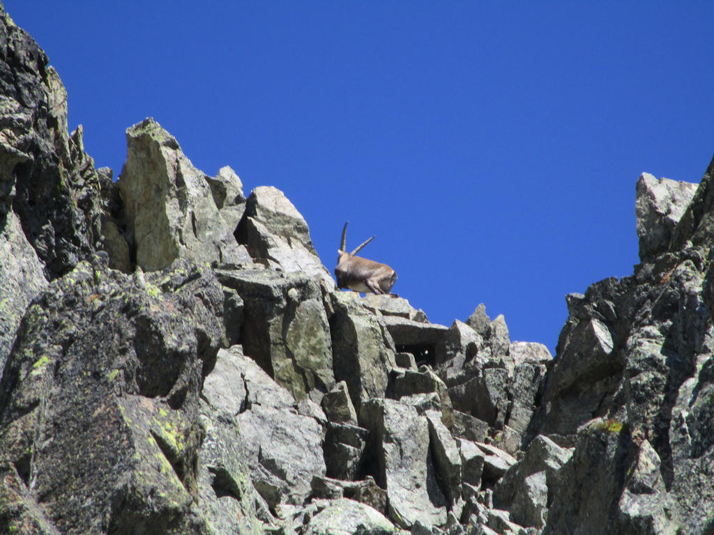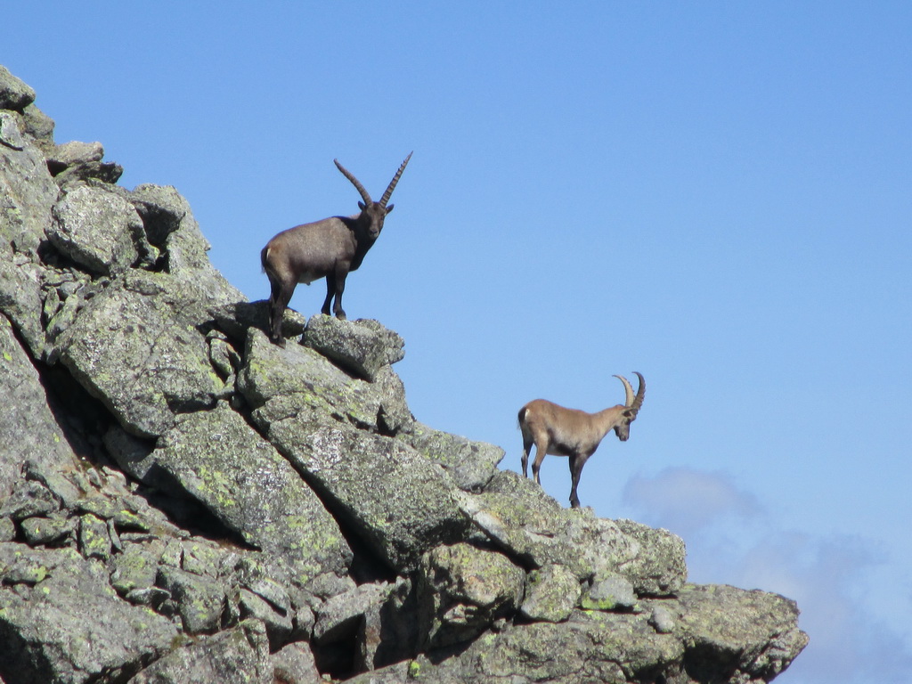 Nasledujúca časť hrebeňa až po vrchol Grevasalvas 2931m. prebieha v pohode pozorovaním ustupujúcich kozorožcov. Nato ako vyzerajú nemotorné tak predvádzajú parádne kúsky.