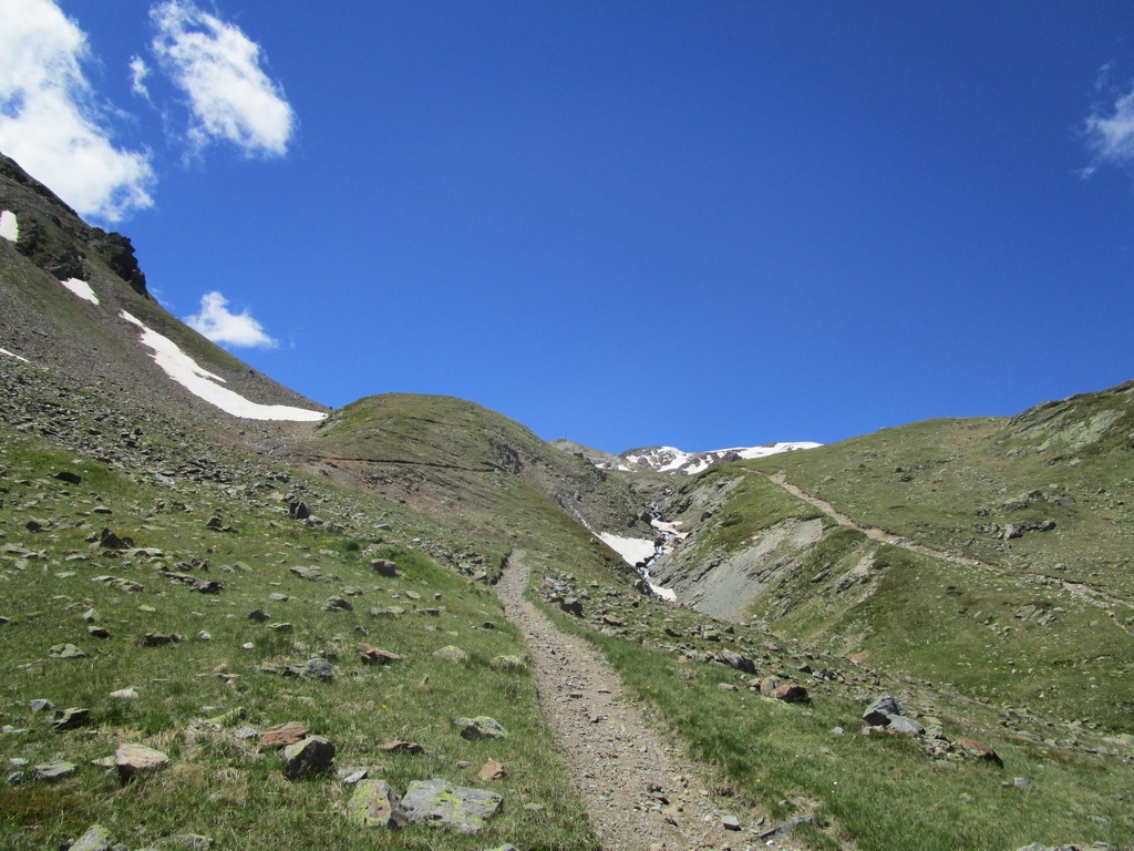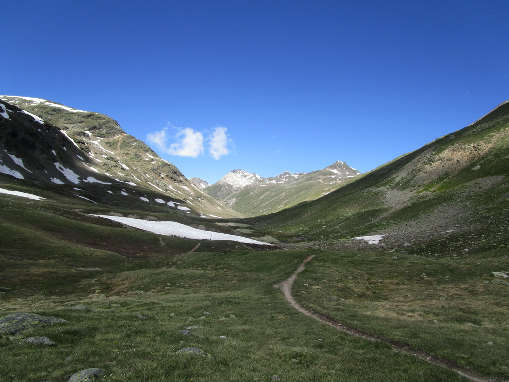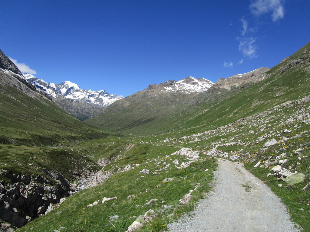 Na túto túru som vyrazil z parkoviska pri lanovke na Diavolezzu (2063m.)(Švajčiarsko, cesta medzi Pontresinou a passom Bernina). Najprv som vystúpal pohodovou Val de Fain až po La Stretta (2456m.). Tu sa začína tlačenie. Po asi 300v.m. tlačenia sa chodníček zmení na traverz doprava a traverzujúc horu Piz la Streta/Monte Breva (3104m.) a dostaneme sa až na chrbát voľne spadajúci ku Lago del Monte (2606m.) v rovnomennej doline. Najvyšší bod dosiahneme cca (2788m.)