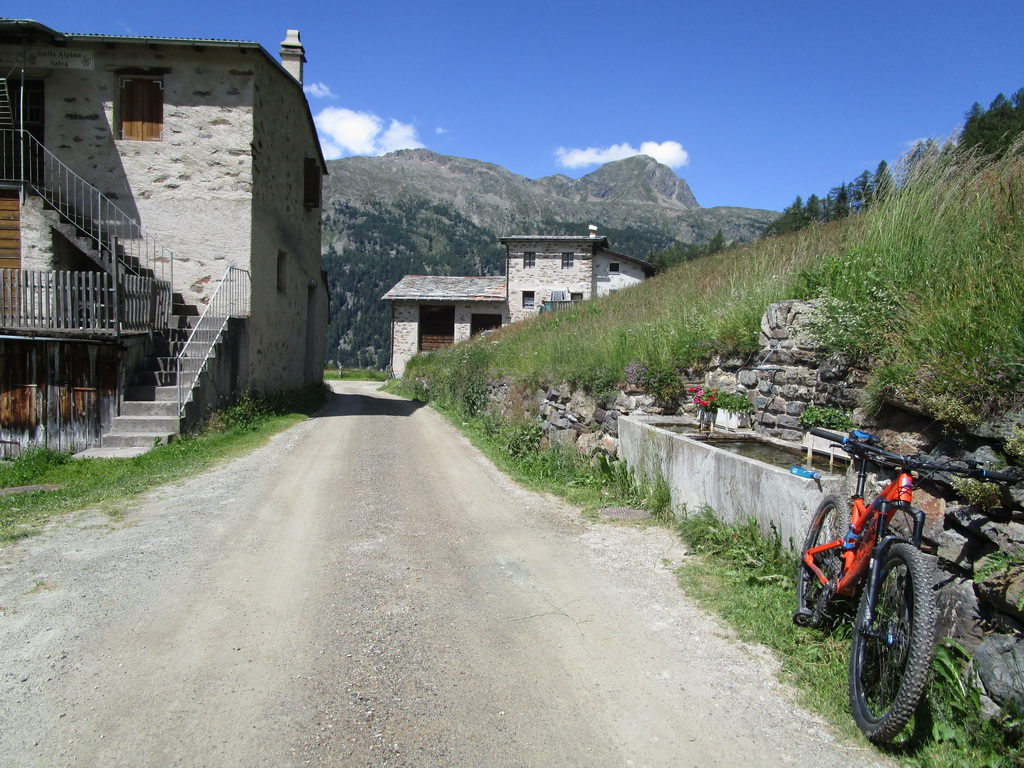 Druhý krát križujem hlavnú cestu pri moste pod Forcolou di Livigno. Pokračujem parádnym singlom až do Sfazú. V závere už je lesná cesta. Na stúpanie do Val di Campo sa napojím trošku vyššie nad hlavnou cestou. Ušetril som pár výškových metrov.