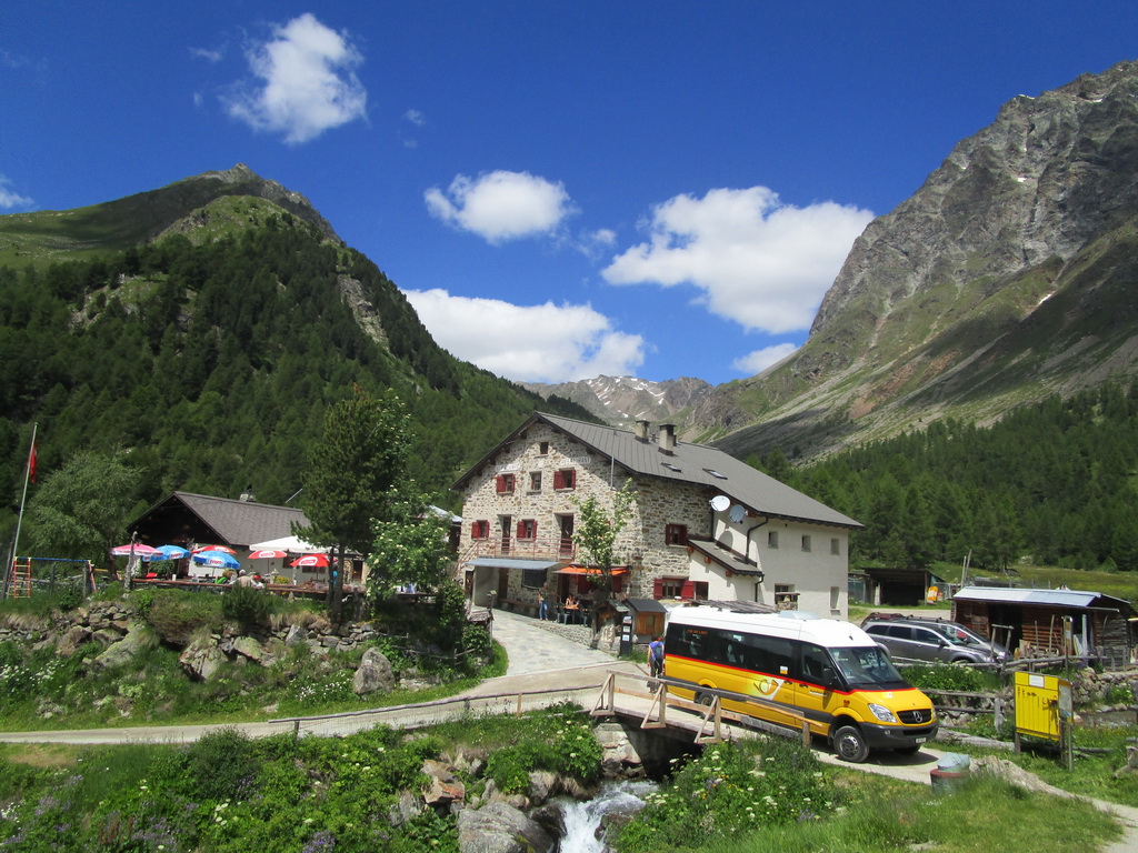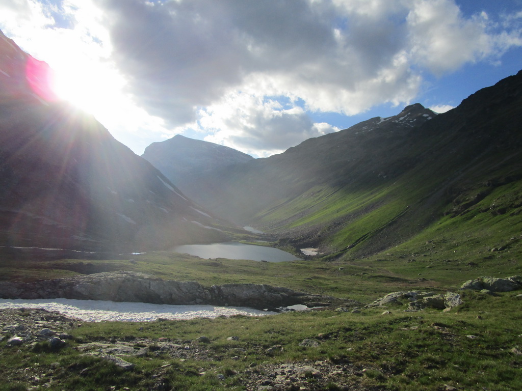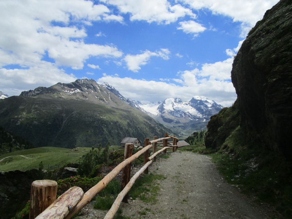 Ráno som zaparkoval pod passom Bernina na bezplatnom parkovisku a vyrážam. Z passo Bernina kam som vyšiel po asfaltke odbočujem doprava na označenú biketrasu. Málokedy začínam túru hneď parádnym zjazdom. Pri križovaní hlavnej cesty treba spozornieť, môžu vzniknúť orientačné problémy. Kto ale kukne aj do mapy bude v pohode. Singltrail je totožný s červeno značeným turistickým chodníkom.