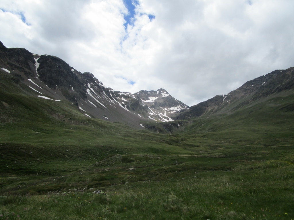Nasleduje stúpanie jednou z najkrajších dolín aké som v Alpách stretol - Val di Campo. Zachádzku ku Lago Saoseo si tentokrát nerobím. Hodím pohľadom na Lago Viola a striedavo jazdením/tlačením vystúpam do sedla Viola po zánovnom singltraile.