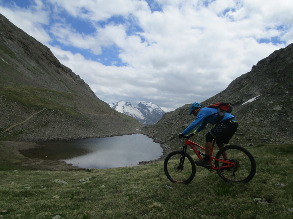 Kto by mal veľa síl a času: Dolinou Val Minor vedie ťažký a dlhý zjazd až ku stanici lanovky Lagalb. Ja však idem na passo Bernina. Občas trošku potlačím, po prehupnutí sa cez kopček následuje zjazd chodníčkom. Krásny singl, ako v podstate väčšina dnešného dňa.