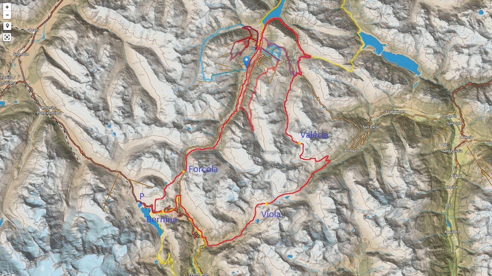 Passo Bernina - Sfazú - Val di Campo - Passo Viola - Val Viola - Passo Valécia - Trepale - Val Pila - Livigno - Forcola di Livigno - Fuorcla Minor - Passo Bernina