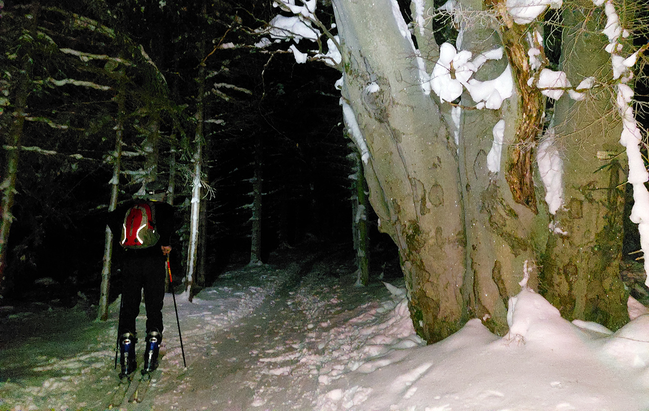 No kedy sa má poctivý robotný ľud v týždni dostať na pásy? Len po robote. Takže teraz rovná sa za tmy. Ale „na tri krále o krok dále“, tak aspoň časť výšľapov za vidna sa zadarila, lebo štart z domu po tretej a do lyží skok o pol štvrtej, dajme tomu. V oboch prípadoch, len ten Lysec bol ešte pri -10 stupňoch a jasnej oblohe, pri výstupe na chatu pod Chlebom (lebo vyššie sme nešli) už popŕchalo a zahmlievalo. A každý, komu som sa pochválil, hneď sa pýtal, či sa to dá zlyžovať a či trčia kamene a či sa dá od parkoviska (DÁ!!!) a také tie klasické oné... A to som si myslel, že tam už všetci boli. No zjavne len polovica, tak tu je pre tú druhú polovicu pár fotiek a jednoduchý report o stave podkladu. Na ktorý sme síce moc nevideli (lebo čelovky), ale niekomu to možno pomôže. V oboch prípadoch je snehu tak dosť, že pri výstupe už netreba moc pod nohy pozerať, dôležité pre zdravie chlpatých lyží je to smerom dole. A dôležité ešte je aj to, že sme pod Chlebom obnovili tradíciu: