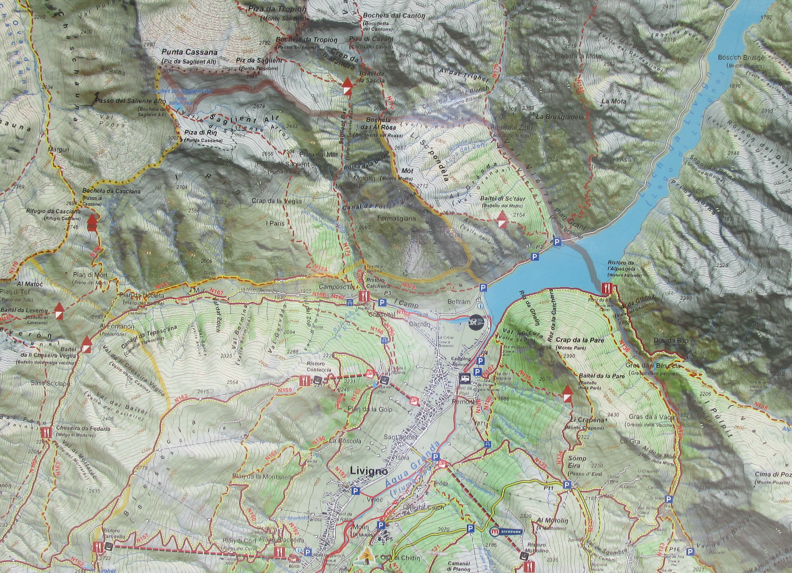 Z passo dEira odbočíme vľavo na značkovaný chodník smer Monte Paré 2390m. Najprv šotolinovou cestou, neskôr úzkym hlineným chodníčkom sa dostaneme po asi polhodinke na vrcholový hrebeň. Odtiaľto sa nám otvoria úžasné výhľady na všetky svetové strany: Val Trela, Val Pila, Lago Livigno a hlavne samotné Livigno sa nám ukážu v plnej kráse. Hrebeň Monte Paré je krásny kúsok prírody, a na začiatku leta porastený alpskými kvetmi. Kto tu zavíta v peknom počasí, veru neoľutuje.