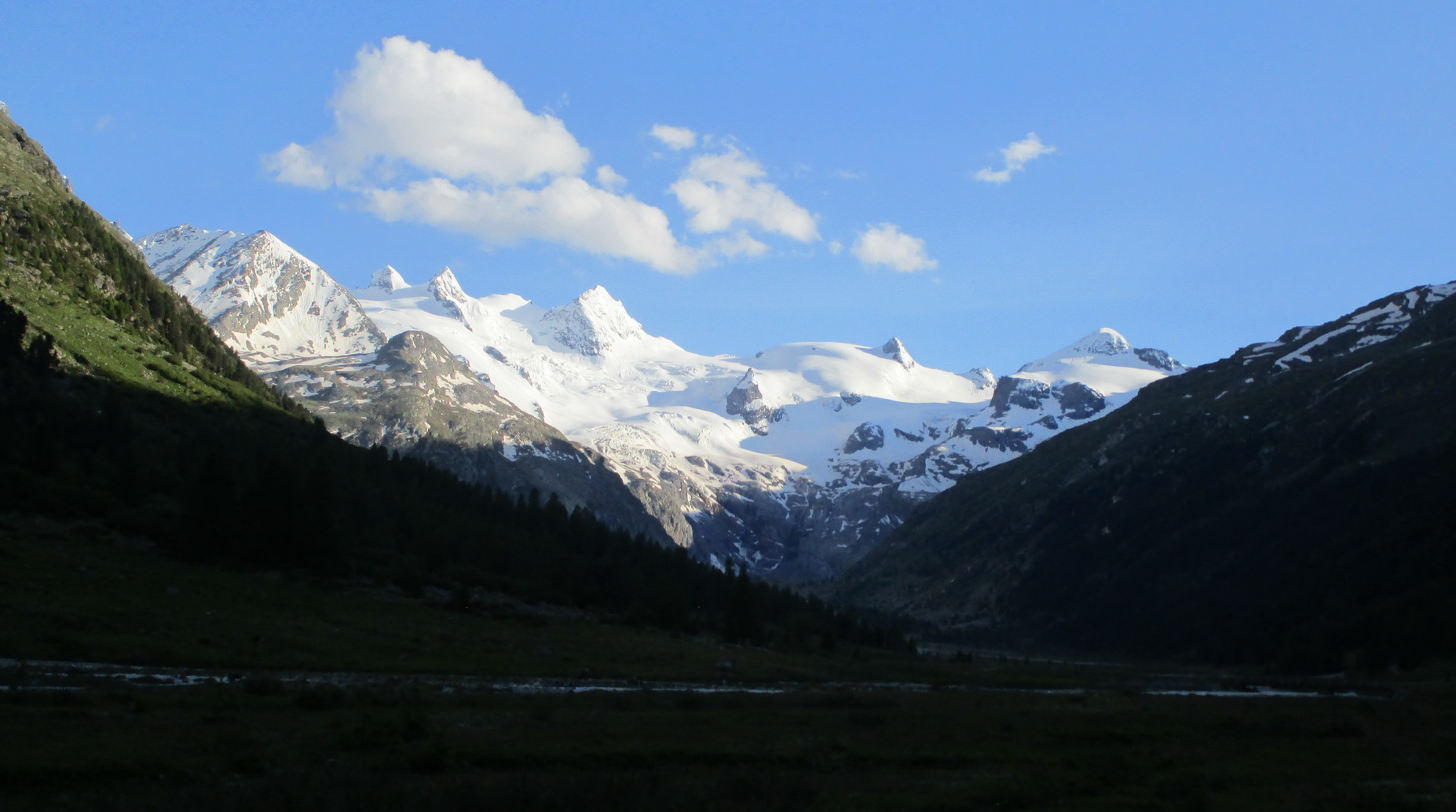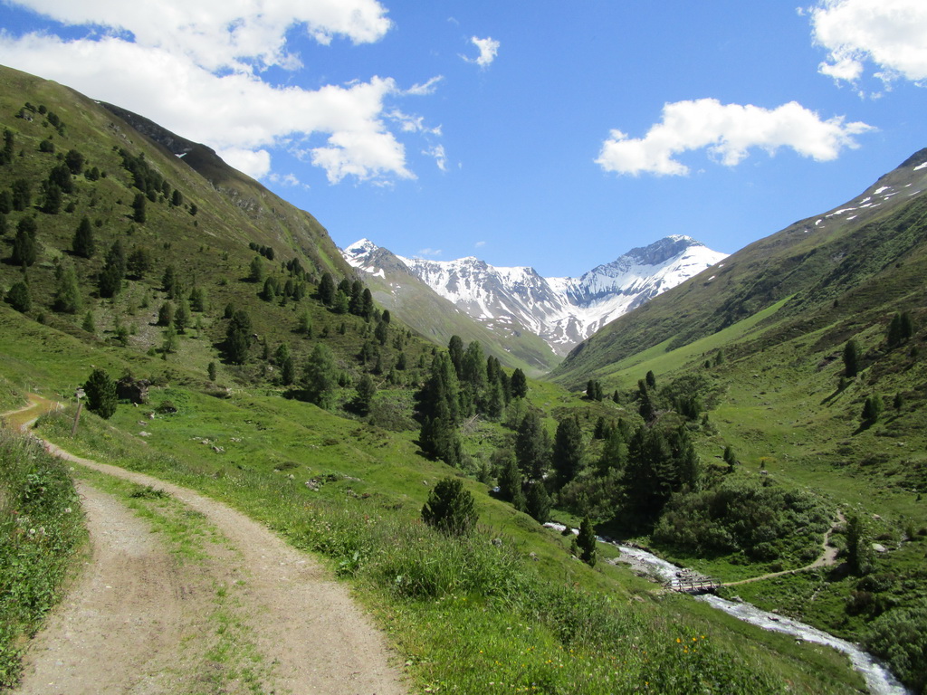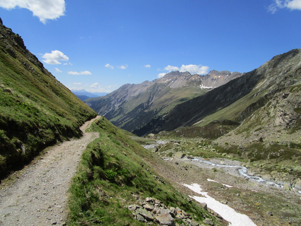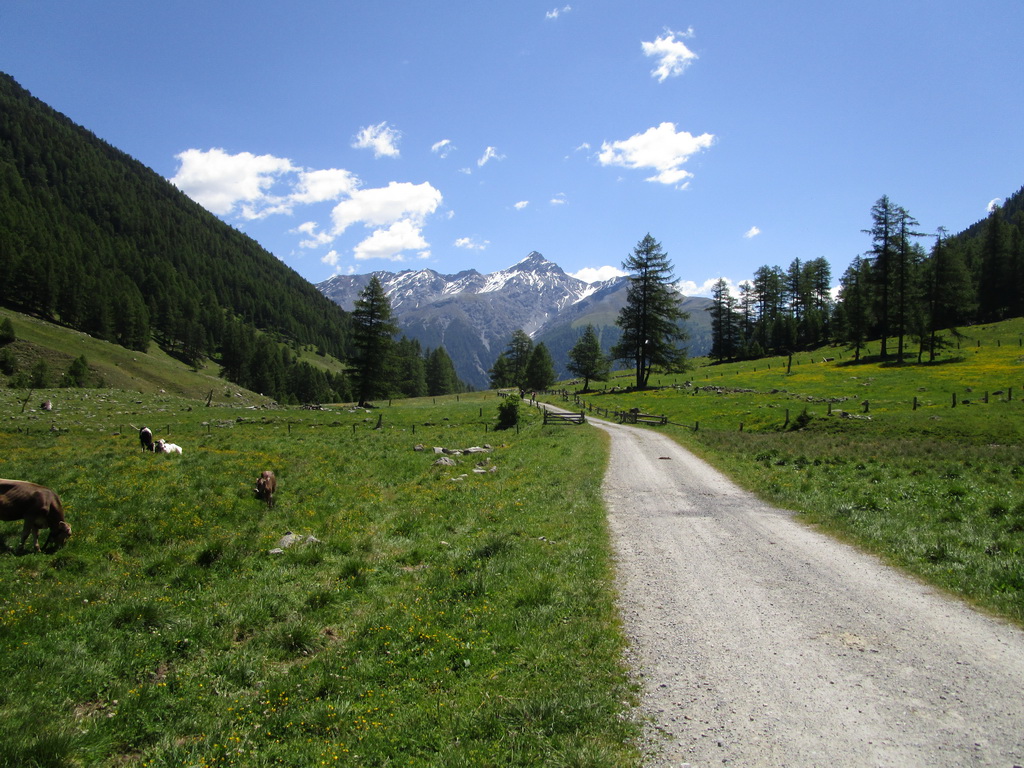 Na tento bajkový okruh vyrážam z Val Rosegu. Však mám pod sebou dve kolesá tak načo používať ešte aj tie štyri na aute. Zjazdujem dole po kvalitnej šotoline (ťažko to definovať, také u nás nie sú) a na asfalt sa pripájam až v Samedane. Čaká ma dlhý deň a tak úsek až po ústie doliny Susauna absolvujem po hlavnej ceste. V osade Chapella sa z nej odpojím a začínam dlhé stúpanie Val Susauna. Najprv asfalt potom šotolina. V závere doliny je výživné stúpanie, pochvaľujem si ale vytuningovaný prevod 32 x 50 a tak to ide parádne.