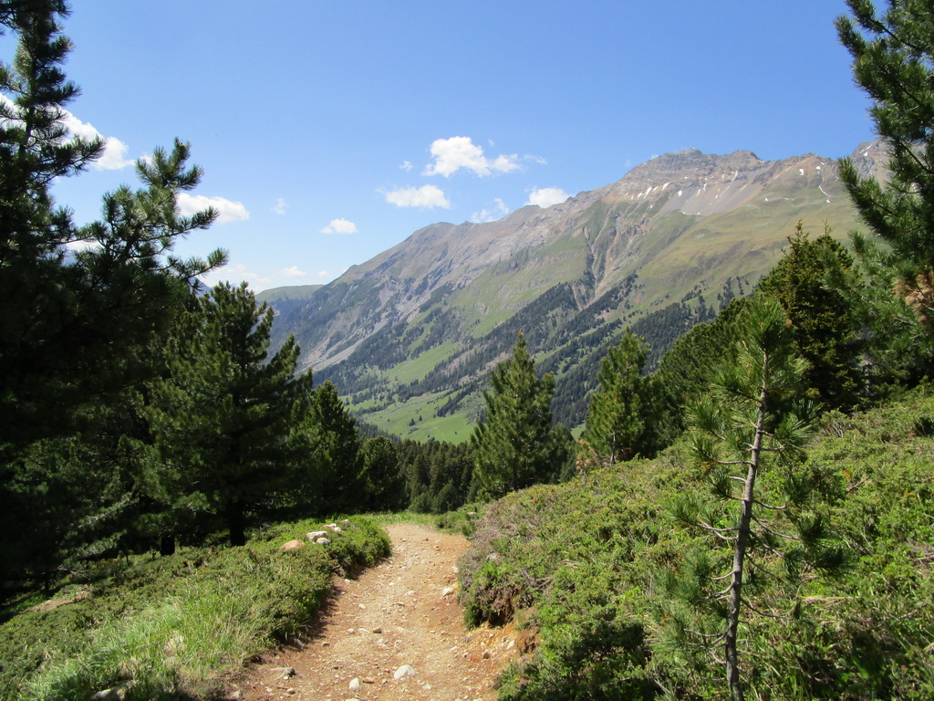 Čaká ma zjazd dole po chodníčku ktorým som už dva razy hore tlačil. Spomínam si nato s úškrnom , konečne to pálim dole a z brzd sa dymí :) Jemná šotoina miestami vyžaduje citlivé brzdenie. Aby som videl aj niečo nové pridávam si zachádzku do doliny Val Plazbi. Výhľady síce parádne ale rozhodujem sa nepodliehať vábeniu dobrodružstva s tlačením a nosením bajku, otáčam a uprednostním jednuduchý a dlhý zjazd do Bergunu.