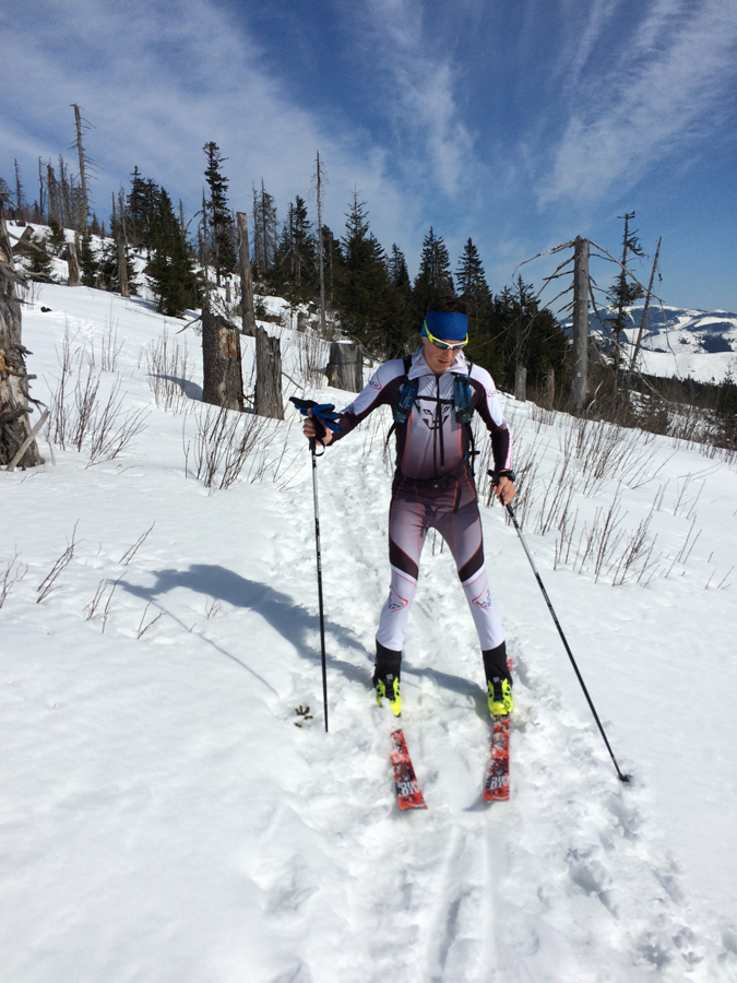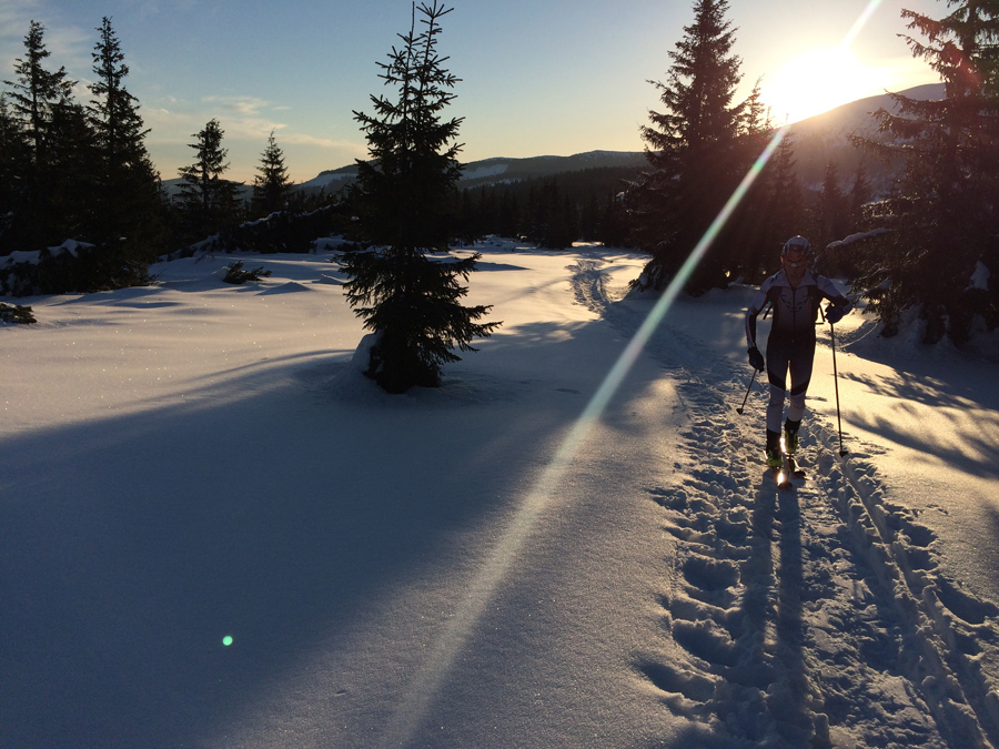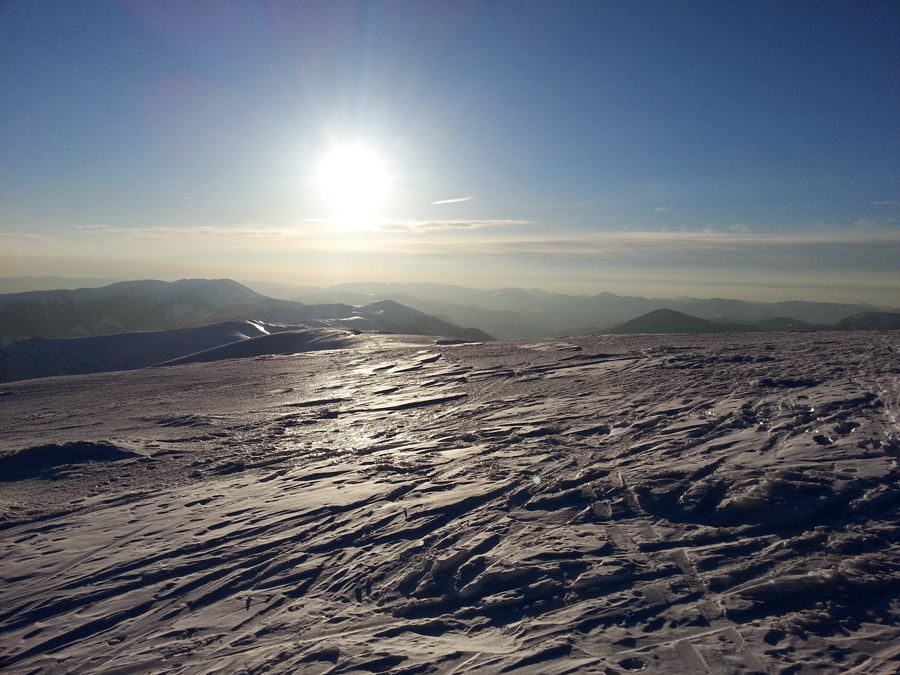 V stúpaní po Ďumbier bolo prvýkrát teplo, ináč to bolo celý deň ideálne. Okolo Štefáničky prišlo Matúšovi zle, tak sa to rozhodol z Ďumbiera strihnúť na Trangošku. Od Chopku sa pridal Martin a zas bolo veselšie. Vysvetlil som mu korčuliarsku techniku a tiež ho to chytilo. Jedla sme mali hŕbu a Martin obzvlášť, tak sme sa kŕmili furt.