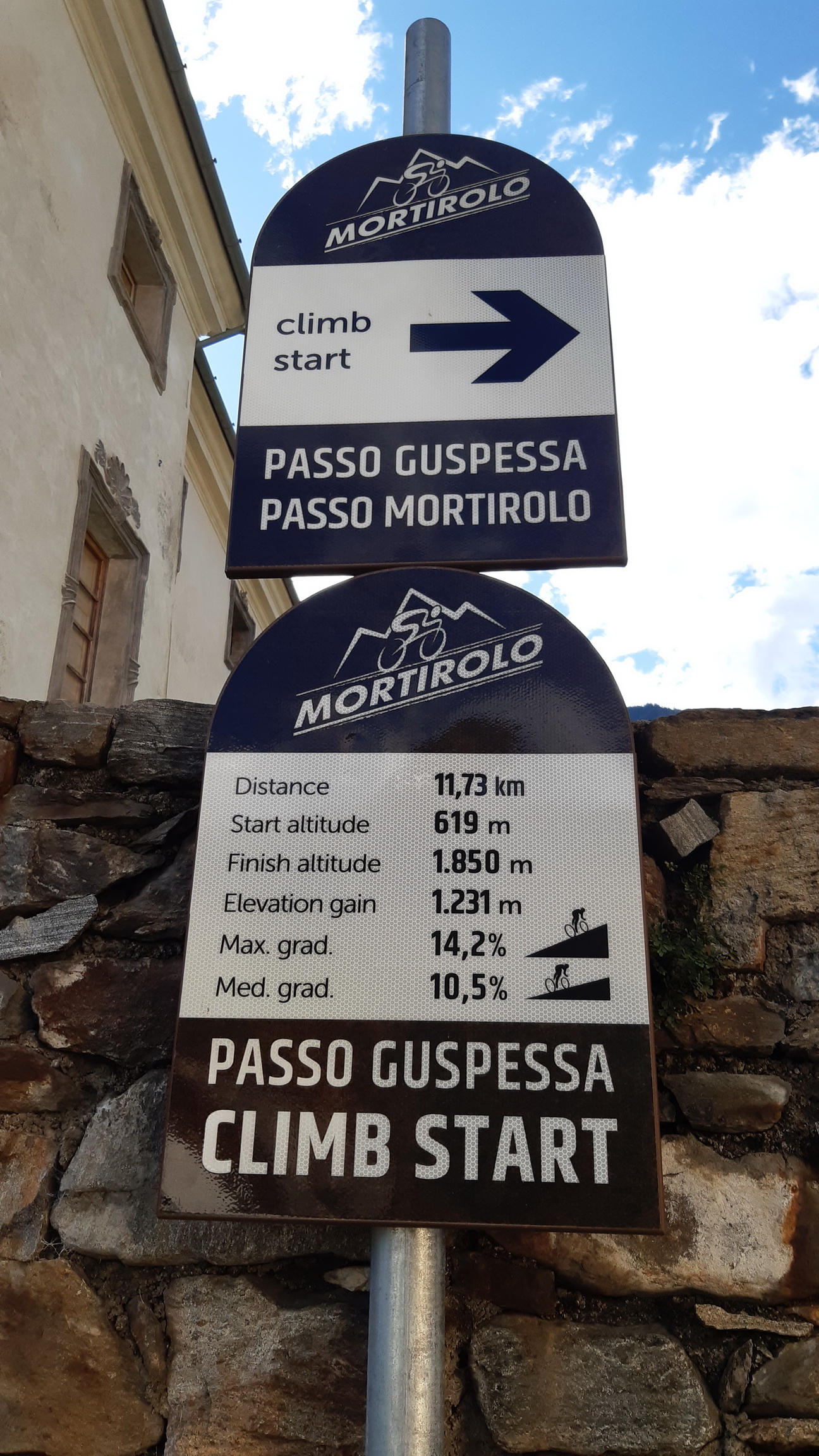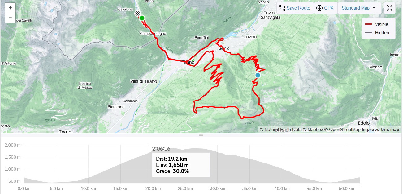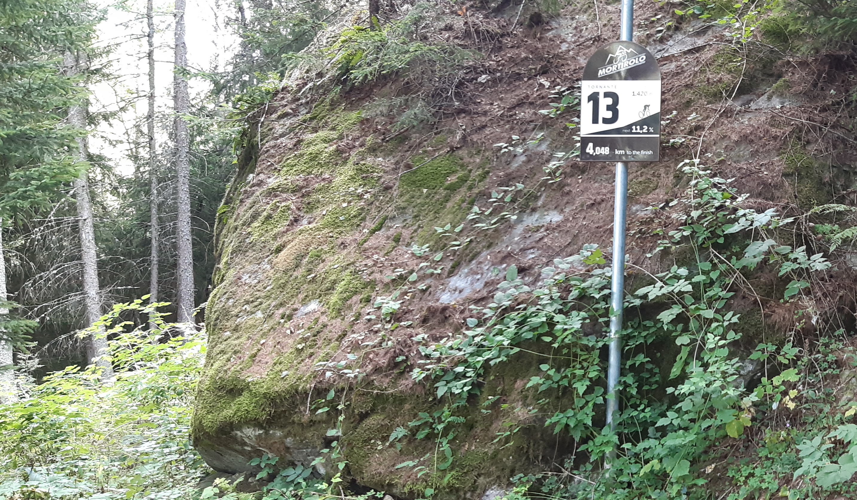 Vzhľadom na to, že som toto leto išiel opäť aj neďaleké Mortirolo, porovnávam a so zdesením koštatujem, že Guspessa je možno ešte ťažšia. Pri pohľade na tabuľku vyfotenú dole v Serniu a pri pohľade na oficiálne čísla musím konštatovať: čísla nesedia! Nesedia nielen s mojimi údajmi na Strave (foto dole), ale údaj na základnej infotabulke dole na začiatku stúpania v Serniu nesedí ani v porovnaní s informačnými tabuľkami v zatáčkach, kde boli napríklad údaje o max stúpaní 18/19%.
