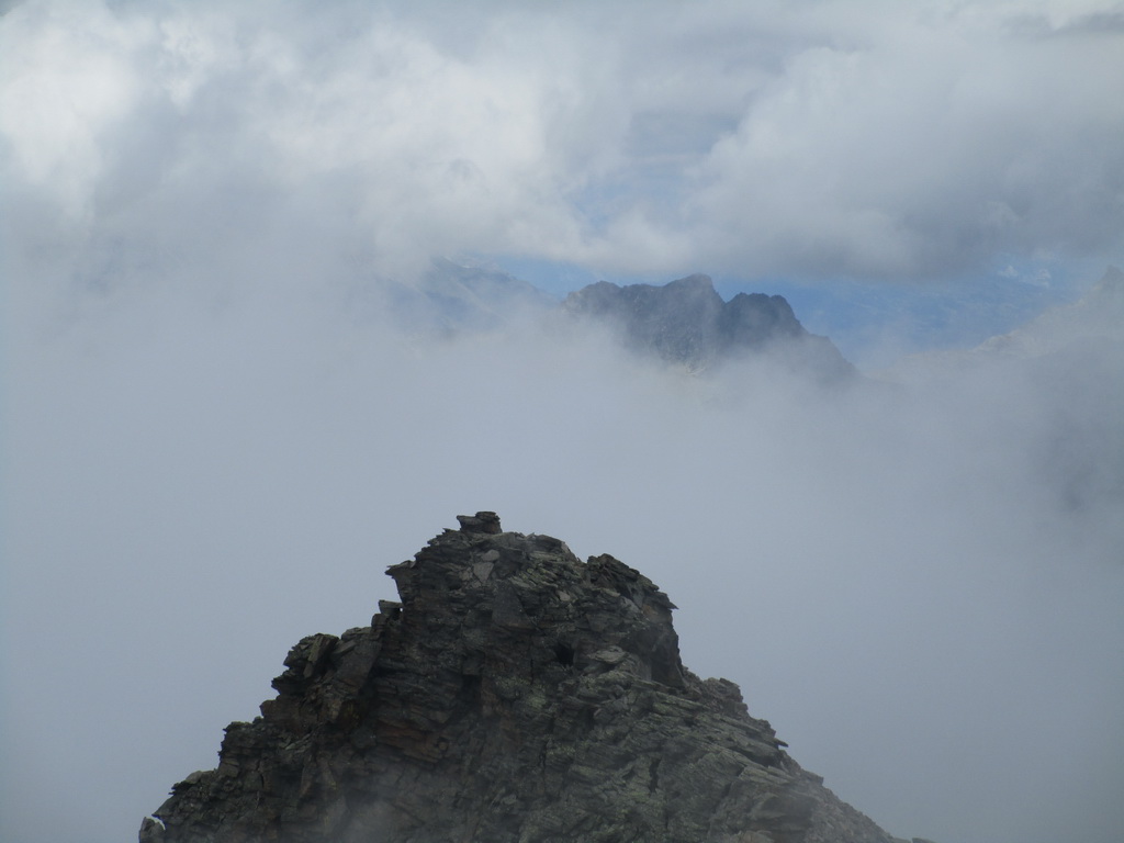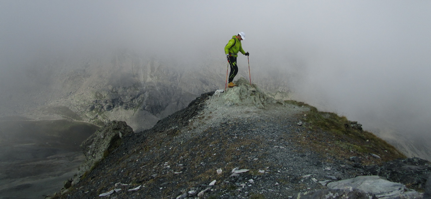Hmly sa prevaľujú a zanedlho som na vrchole. Povinná fotopauza. Obhliadka vrcholu a všímam si že hrebeňom ktorý som videl už zdola vedie nenápadný chodníček. Vyskúšam a pustí to. Síce neznačená ale o to krajšia varianta. Oplatilo by sa to ísť opačne ako som šiel ale nevadí.