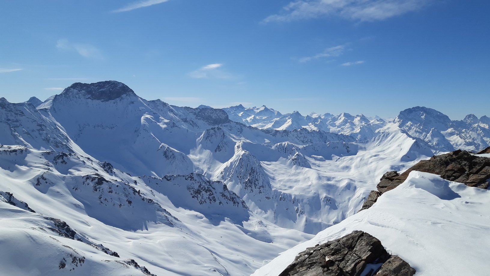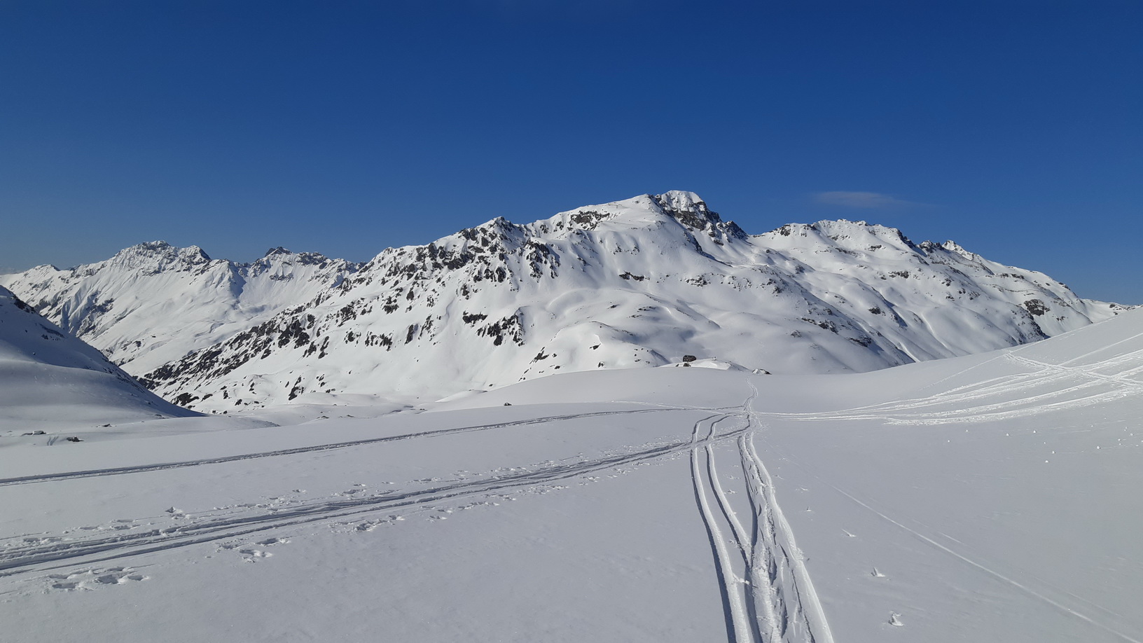 Tak sa mi to podarilo. Krásny krajinársko-výhľadový okruh. Veľa, pre mňa nových, pohľadov. Päť sediel a jeden vrchol, na ktorých som bol prvý raz. Rozhodujem sa, že na chatu už nejdem a lyžujem plynule až dole do Madulainu k autu. Potrebujem sa čo najlepšie zregenerovať na nasledujúci deň. Počasie má vydržať...