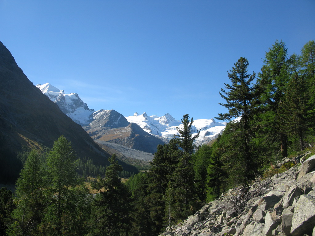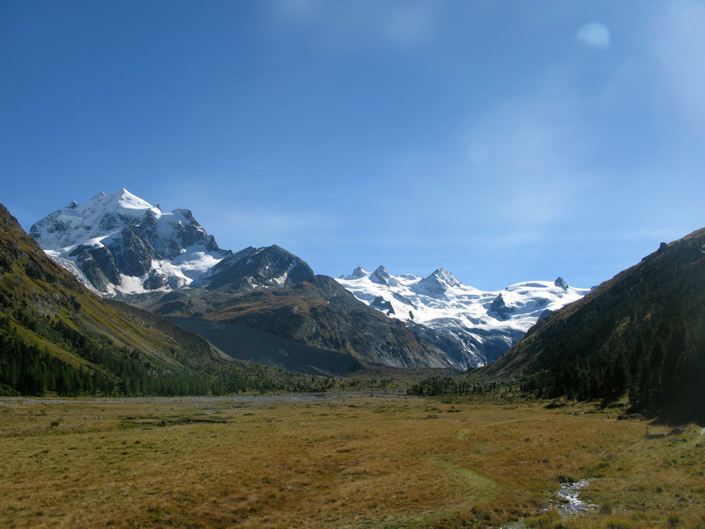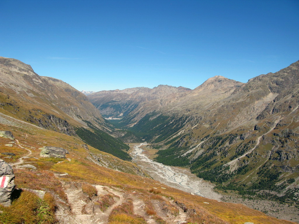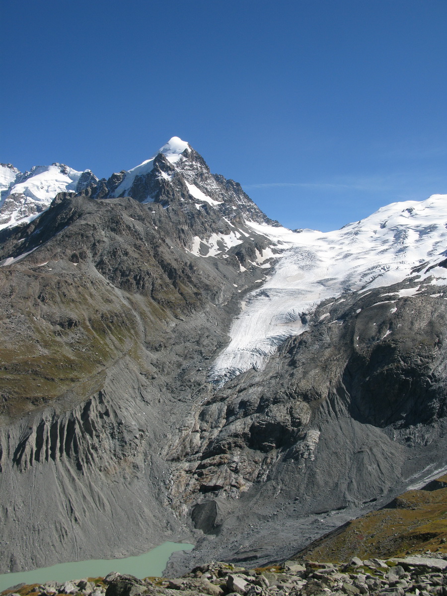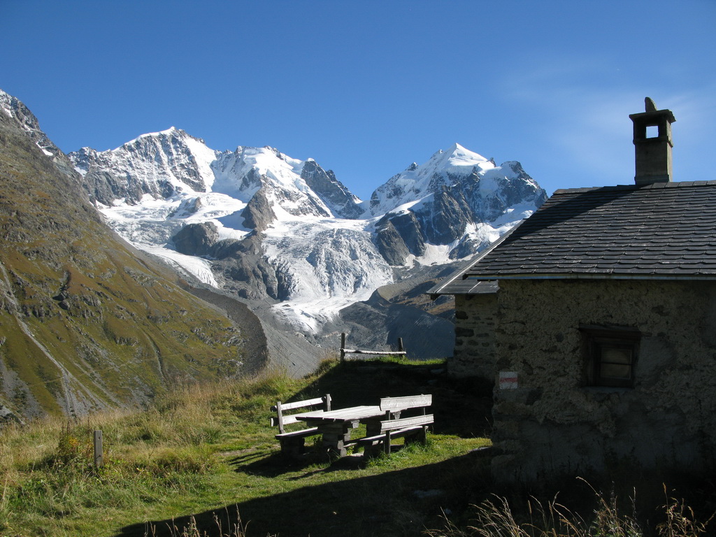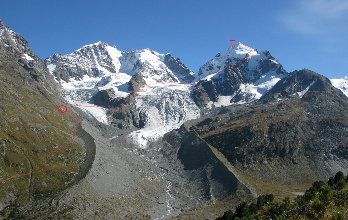 Od chaty Tschierva 2584m. (Val Roseg) začneme stúpať po chodníčku rovnakým smerom ako na Biancograt. Už po pár minútach nasleduje označené rázcestie a smer Roseg odbočuje doprava. Chodníček čoskoro končí a pri prechode dravým potôčikom a suťou nám pomôžu mužíci a občasné červené značky.