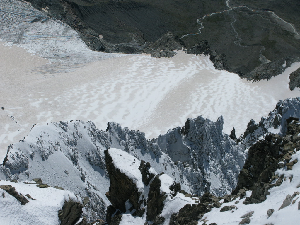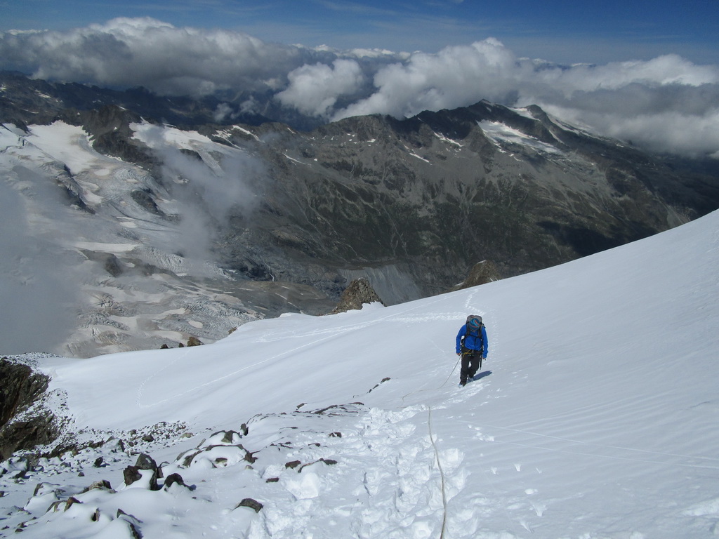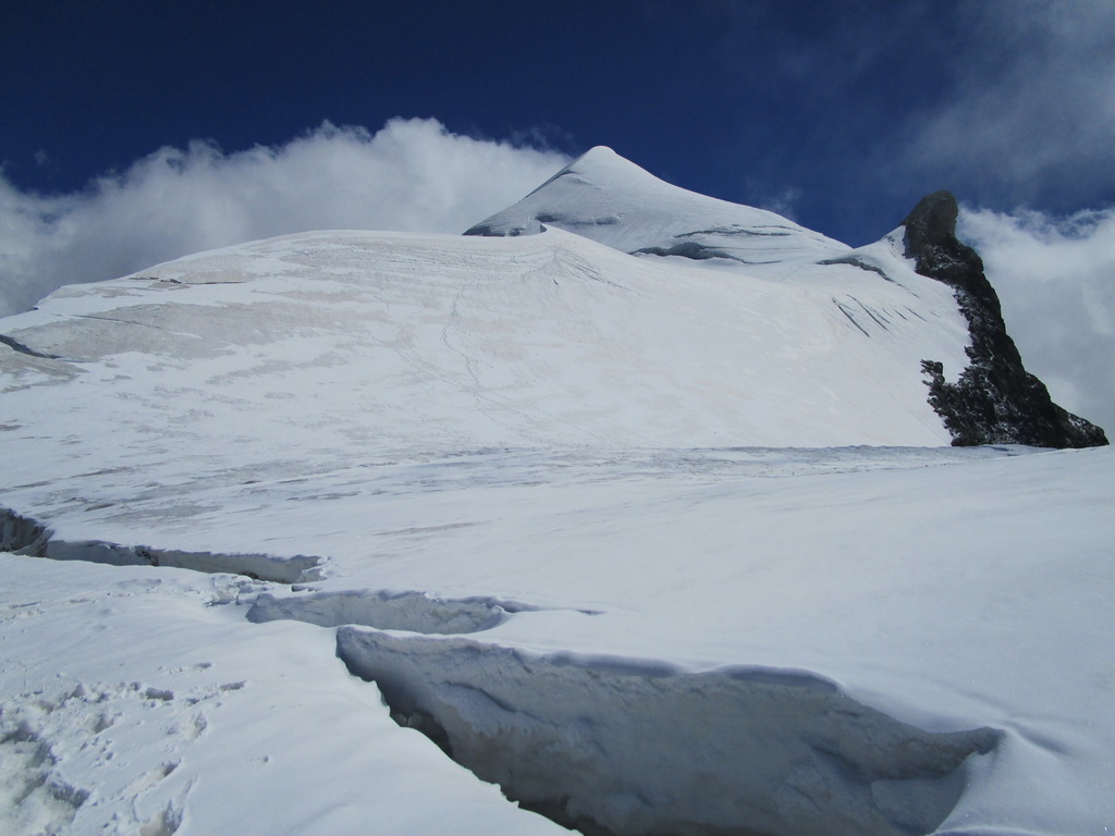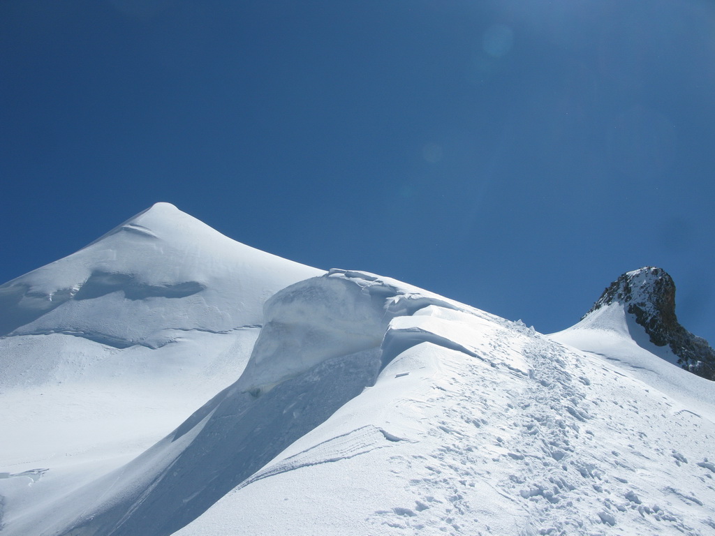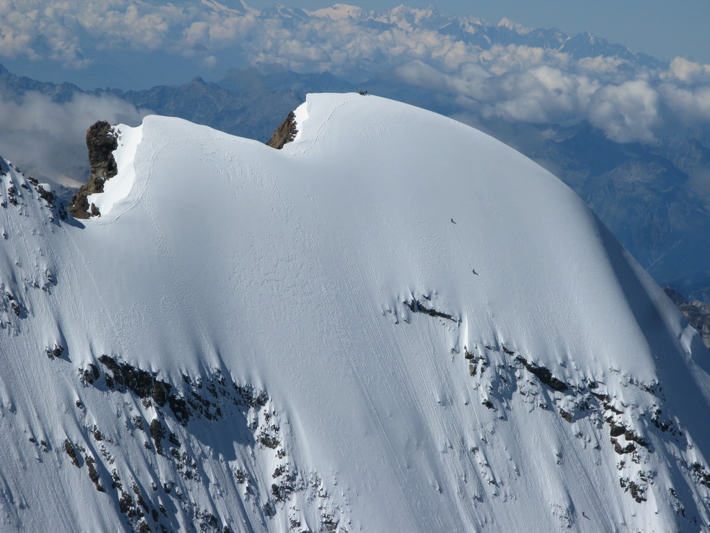 Počas výstupu cez Eselgrat 31.7.2015 bolo na ľadovci veľa nových trhlín. Výrazne teplý mesiac júl spôsobil okrem trhlín aj väčšie riziko pádu ľadovej lavíny z vysutého séraku nad ľadovcom. Je to ďalšie nebezpečenstvo naviac v tomto teplom počasí. Aj nad skalným Eselgratom je množstvo nových trhlín, ktoré treba obchádzať. Záverečný hrebeň na hlavný vrchol je celý odtopený, skala tu ponúka pekné lezenie s množstvom chytov obtiažnosť III. Väčšina ľudí sa stále otáča na nižšom bielom vrchole - je to trošku škoda nedotiahnuť tento pekný výstup dokonca... Pri zostupe po sérii zlaňákov zlaníte až dnu do okrajovej trhliny. Mali sme šťastie akurát deň pred nami niekto prekopal dieru, ktorou sa dalo pohodlne výjsť vonku...