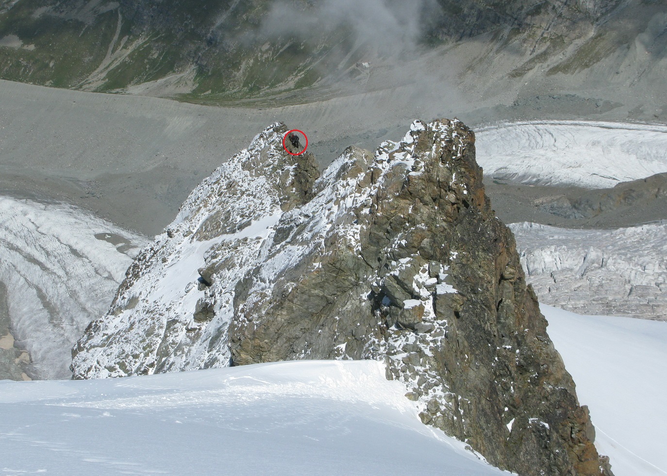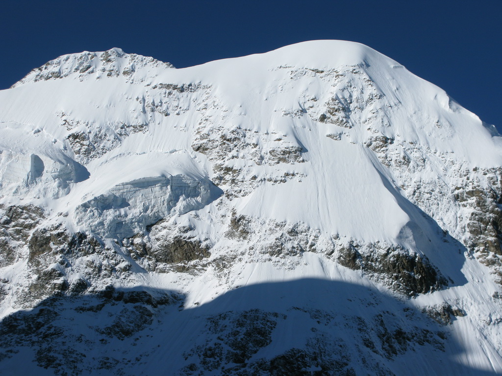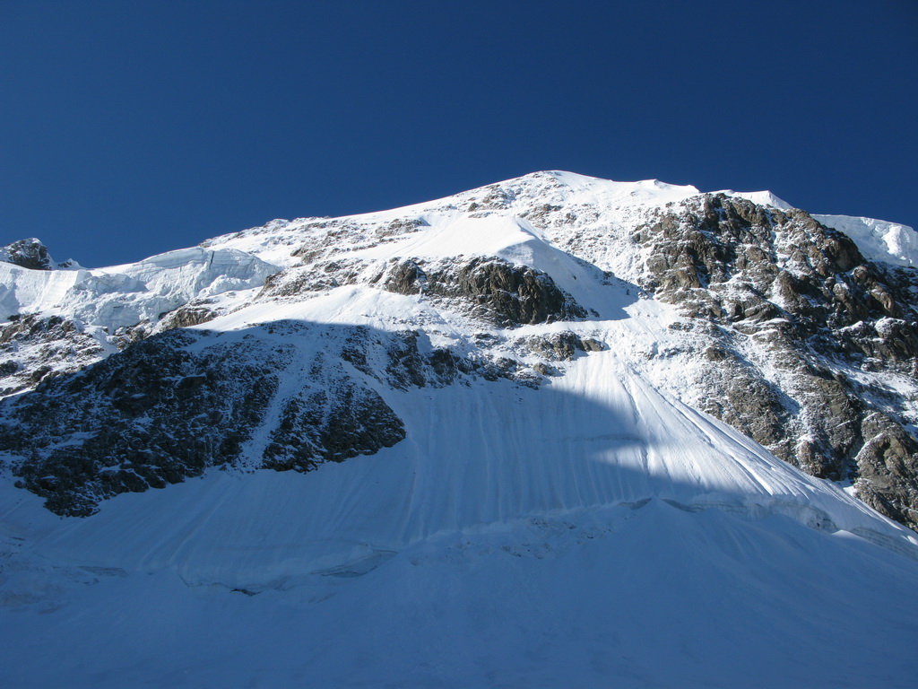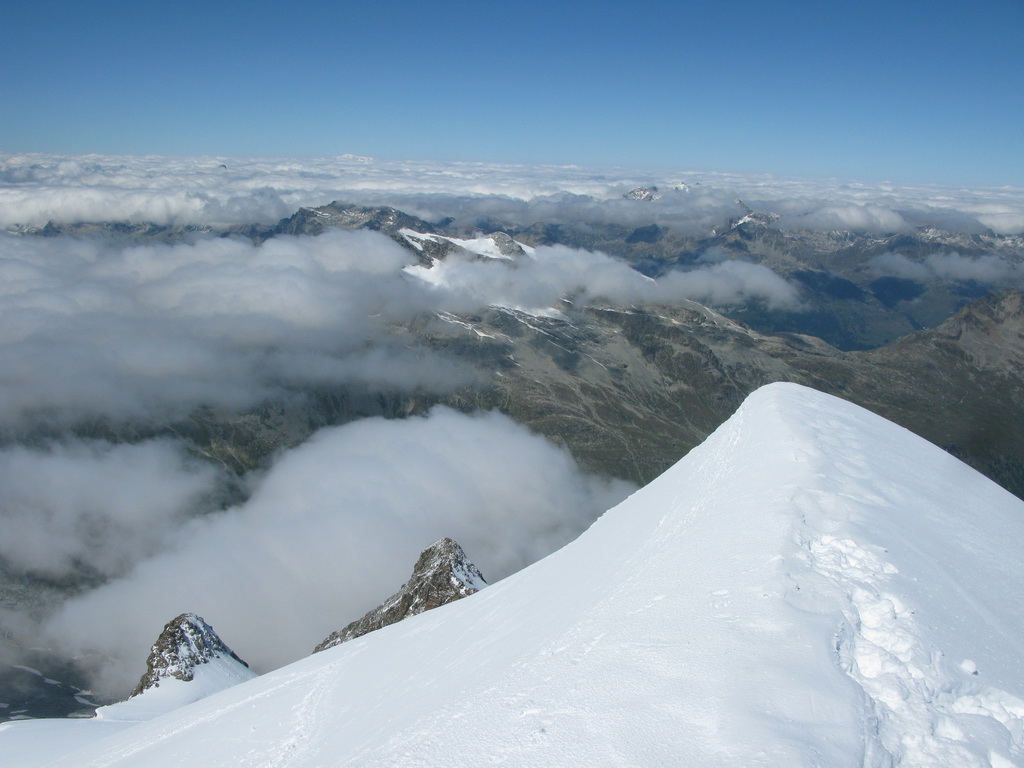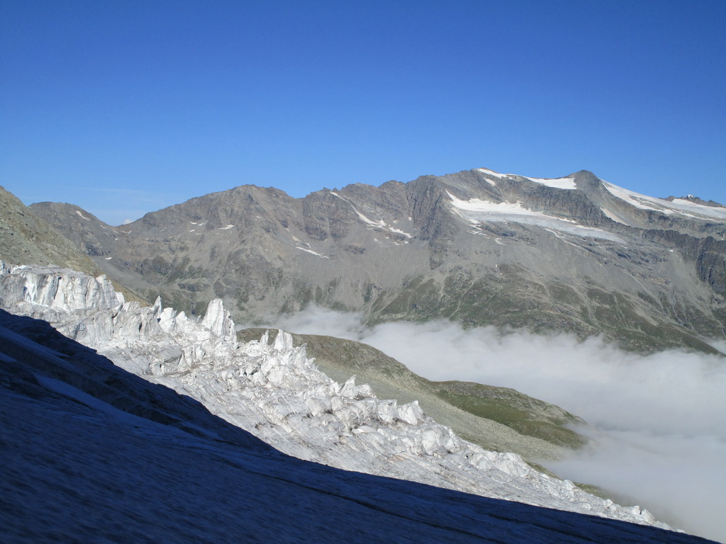 Počas výstupu cez Eselgrat 31.7.2015 bolo na ľadovci veľa nových trhlín. Výrazne teplý mesiac júl spôsobil okrem trhlín aj väčšie riziko pádu ľadovej lavíny z vysutého séraku nad ľadovcom. Je to ďalšie nebezpečenstvo naviac v tomto teplom počasí. Aj nad skalným Eselgratom je množstvo nových trhlín, ktoré treba obchádzať. Záverečný hrebeň na hlavný vrchol je celý odtopený, skala tu ponúka pekné lezenie s množstvom chytov obtiažnosť III. Väčšina ľudí sa stále otáča na nižšom bielom vrchole - je to trošku škoda nedotiahnuť tento pekný výstup dokonca... Pri zostupe po sérii zlaňákov zlaníte až dnu do okrajovej trhliny. Mali sme šťastie akurát deň pred nami niekto prekopal dieru, ktorou sa dalo pohodlne výjsť vonku...