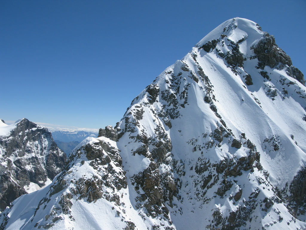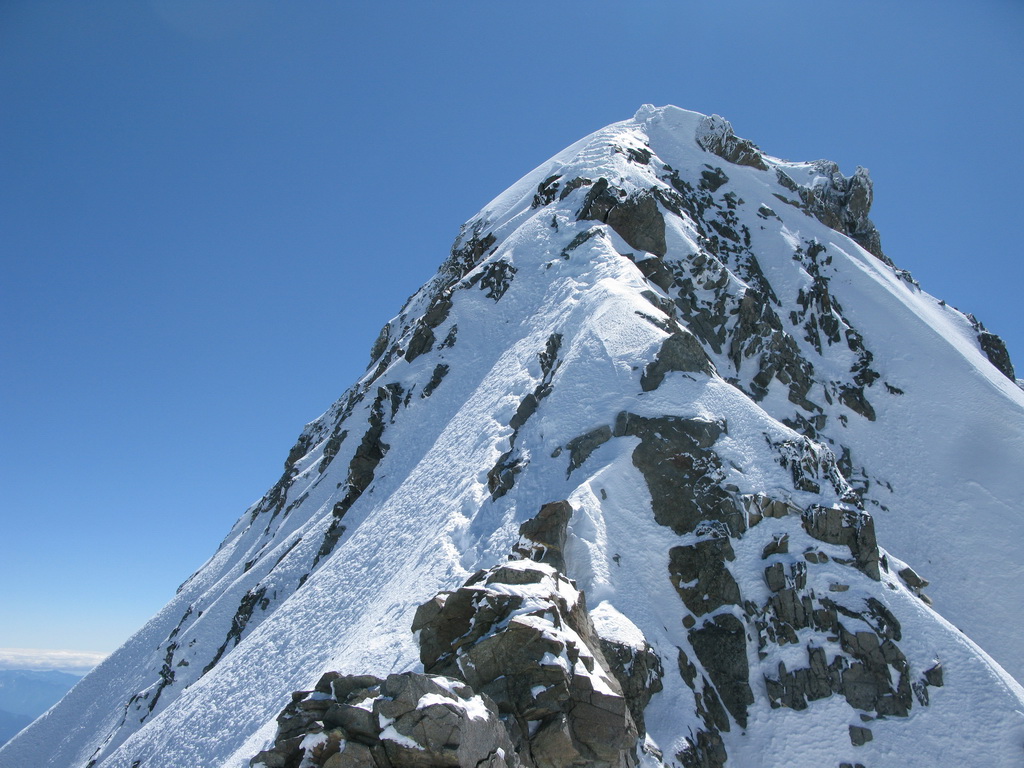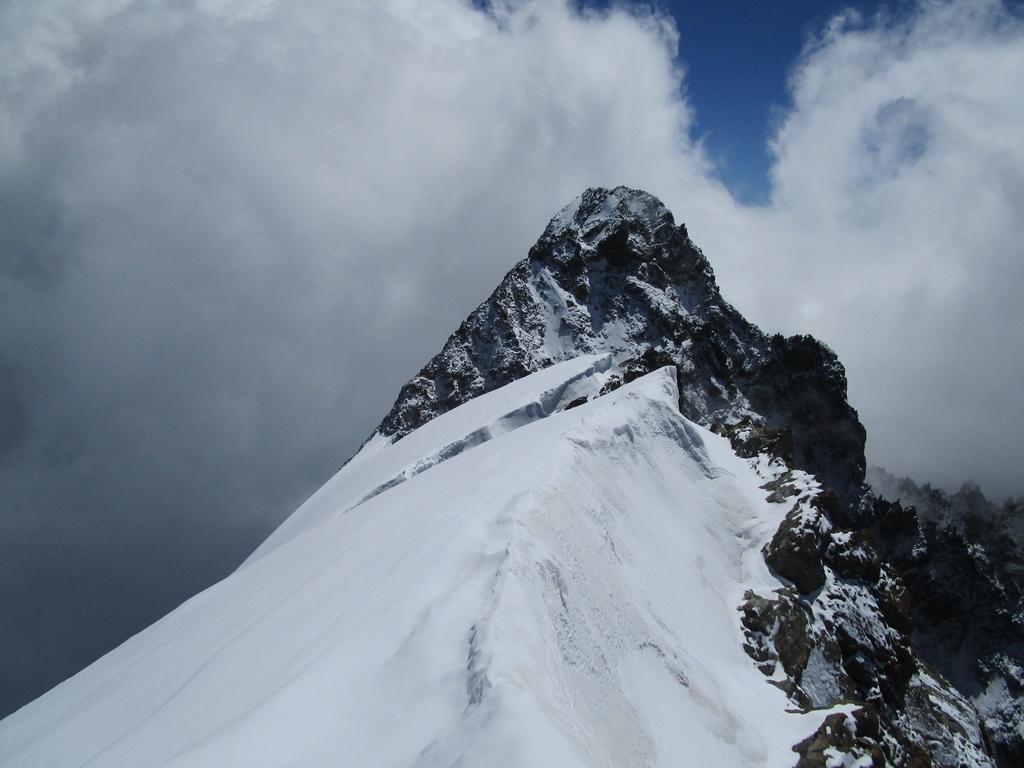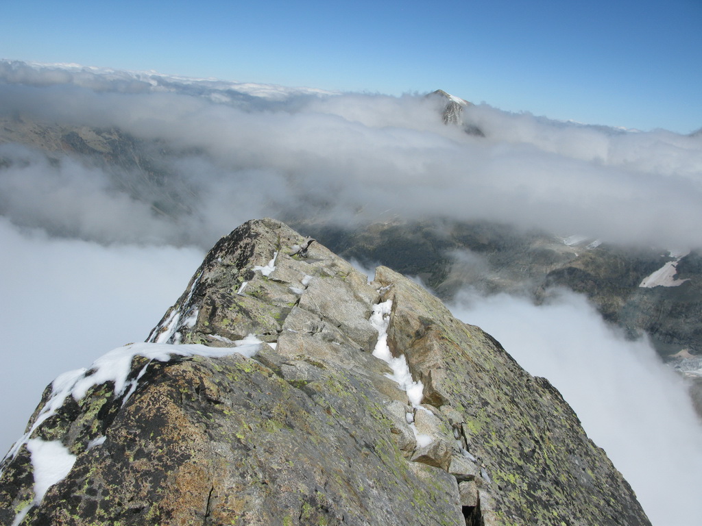 Po prekonaní Eselgratu nasleduje ľahký šlapavý úsek na vrchol Schneekuppe, odtiaľto sa ide po exponovanom hrebeni /pozor preveje/ do sedielka. Posledný hrebeň zo sedielka na hlavný vrchol je veľmi exponovaný, možnosti istenia slabé. Liezol som s jedným čakanom a toto bolo jediné miesto kde by som hlavne pri zliezaní ocenil aj druhý...