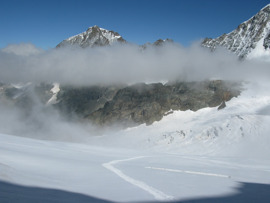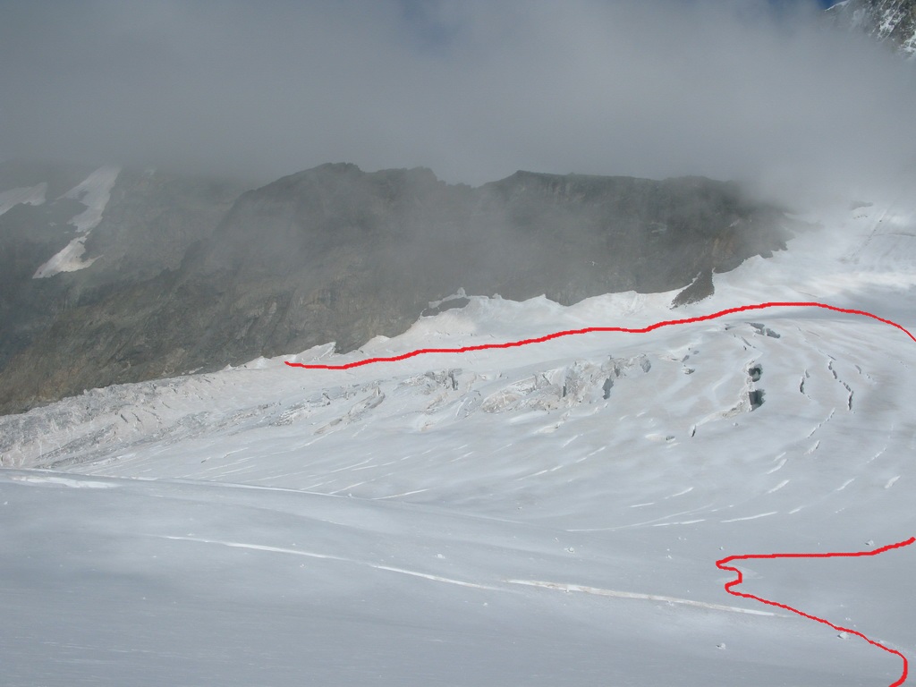 Aj keď niektoré lanové družstvá si to namierili krížom cez ľadovec ja ako sólista som išiel pekne po stopách dookola...