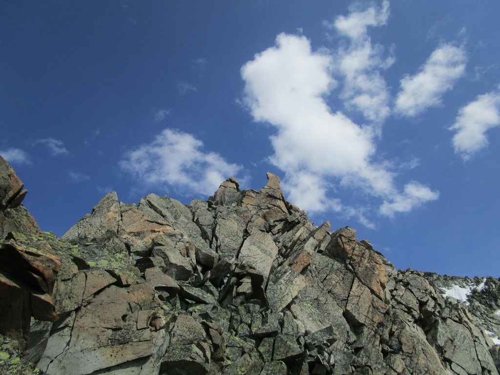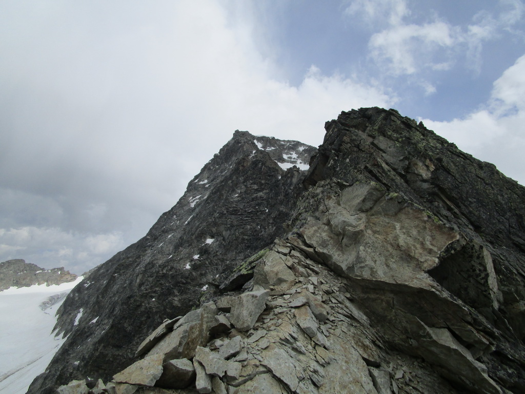 Po vylezení na vežu od ktorej už vedie orientačne jednoznačný hrebeň na vrchol už zo mňa spadli obavy, či sa náhodou nebudem musieť vrátiť rovnakou cestou naspäť. Trošku ma vyplašili kvapky z búrkového mraku voľne prebiehajúceho okolo, našťastie sa však vzdialil rovnako rýchlo ako prišiel.