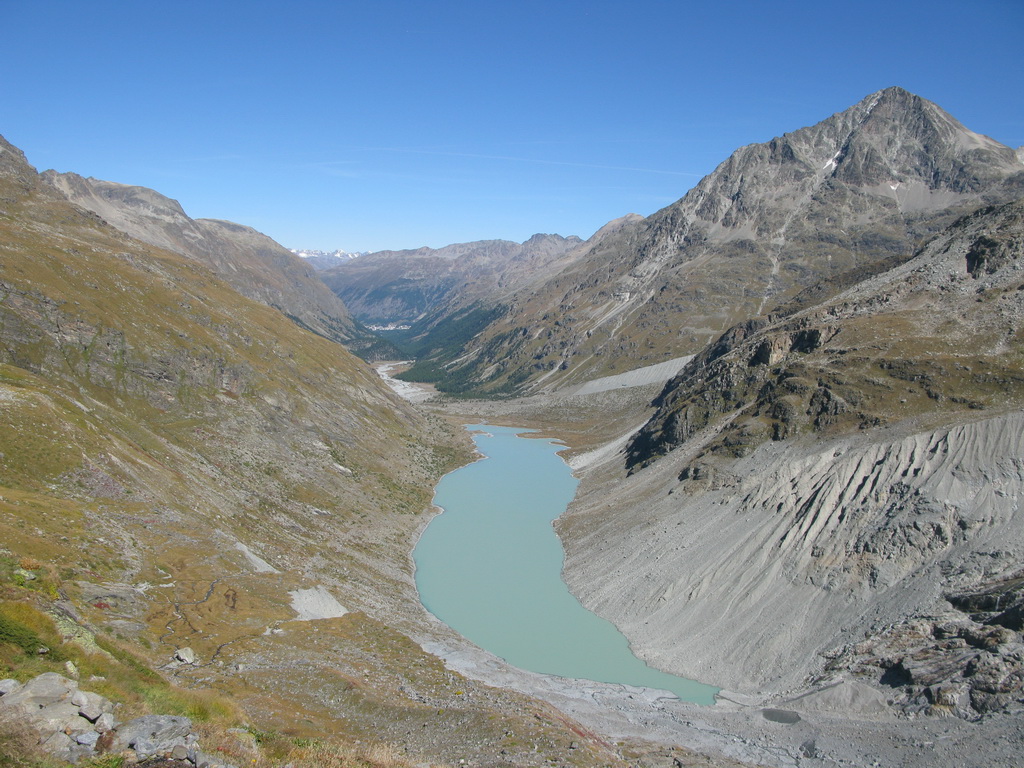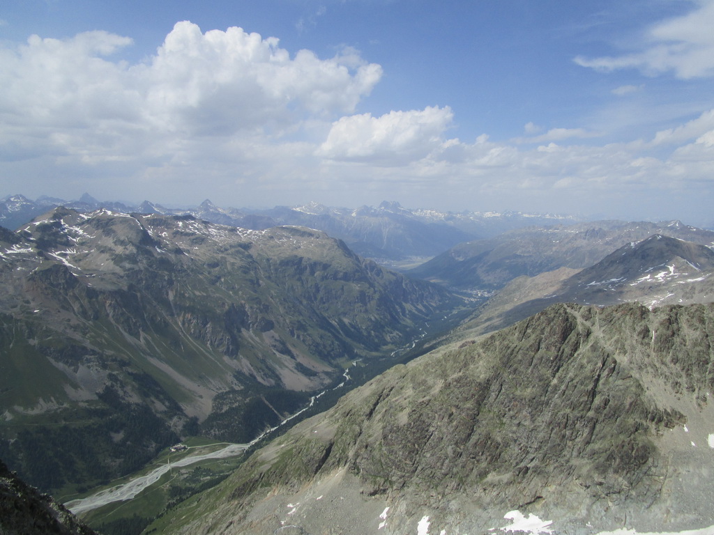Na vrchole som si vychutnal už známe ale stále úchvatné výhľady. Trochu sa pohral so samospúšťou a zbehol som dole normálkou cez topiaci sa ľadovec Tschierva na chatu. Na ľadovčeku nie sú žiadne väčšie trhliny, treba si však dať pozor na tie maličké trhlinky na ktorých sa dá zraniť.