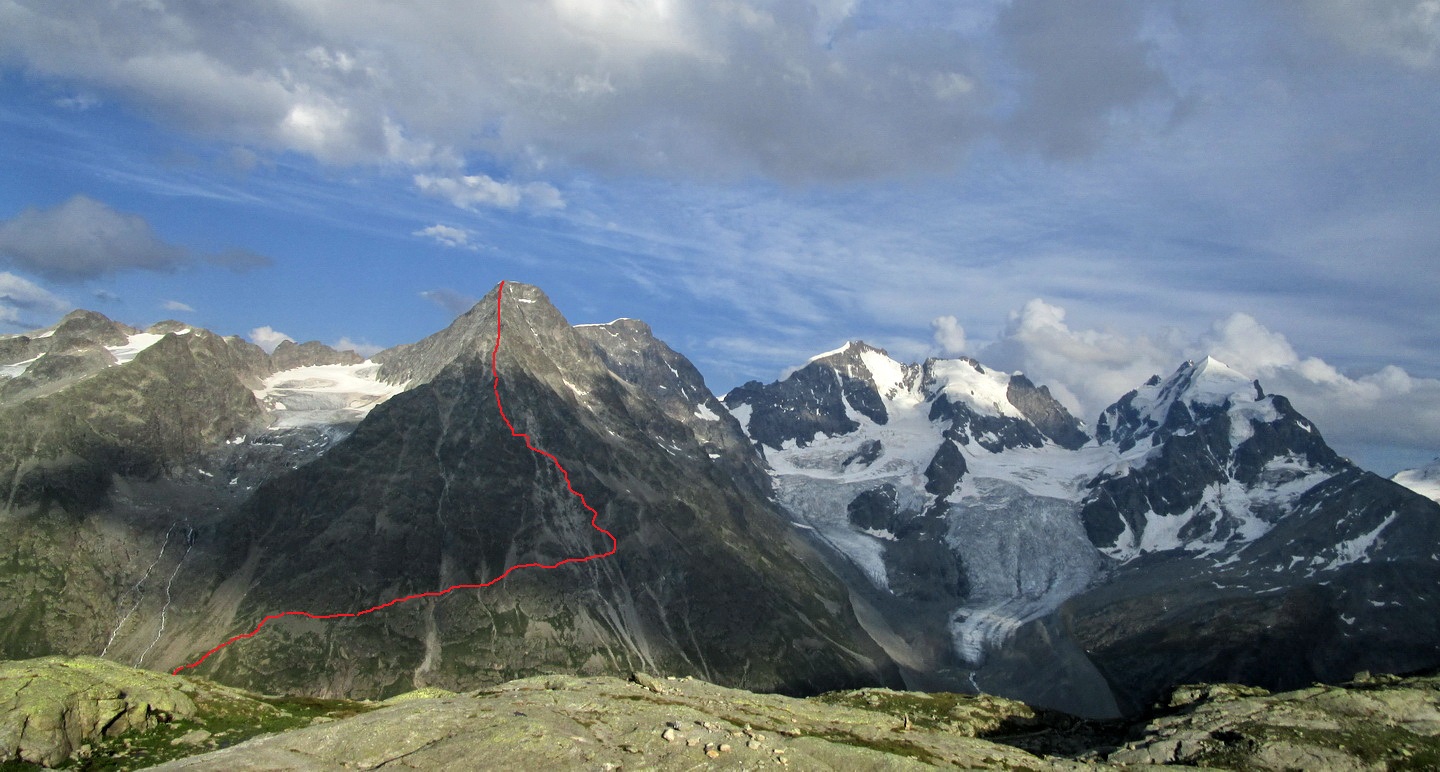 Na tento kopec vedie najľahšia výstupová trasa z vrcholov hlavného prstenca Berninských Álp. Z terasy hotela Roseggletscher sa však na Tschiervu pozeráme z opačnej strany ako vedie normálka východným hrebeňom. Po dvoch rokoch pozerania sa na výrazný západný hrebeň, ktorý sa už dnes kôli rozlámanej skale ale aj kôli množstvu íných zaujímavejších cieľov nechodí, som sa konečne vybral pozrieť sa ako to tam vyzerá.