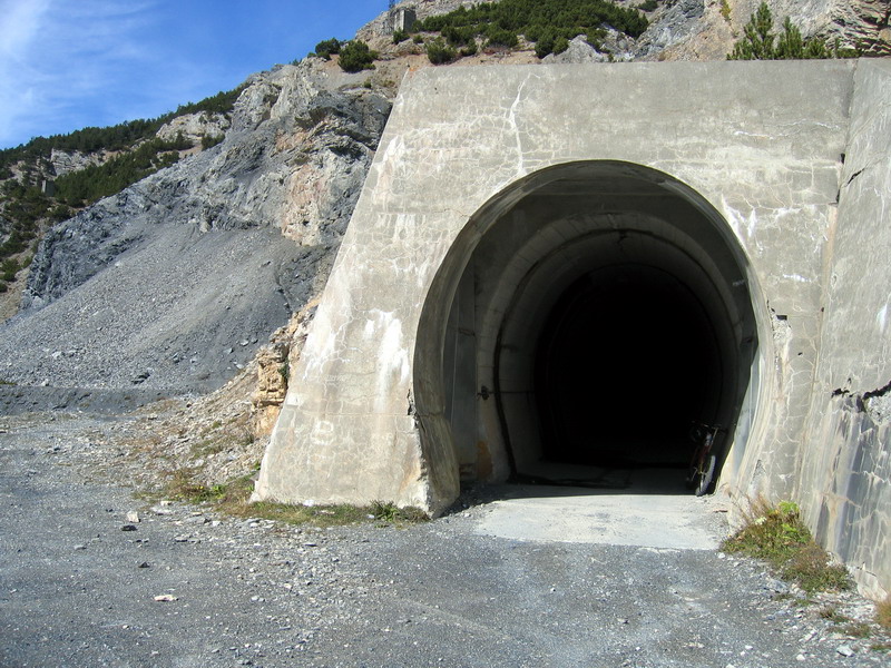 Čaká ma nádherný zjazd asi 1000 v. m., na jeho konci sa mi otvorí výhľad na Lago di Cancano. Vápencové horniny dávajú vode azúrovú farbu. Pokračujem po pobreží z pravej strany. Míňam dvoch starších Talianov. Chlapík za mnou kričí, počujem len slovíčko Galeria. Šlapem ďalej, nie je veľa času na zastávky. Rozmýšlam, čo tým chcel povedať, keď prichádzam pred neosvetlený tunel. Hneď mi je jasné, čo to kričal. Vyťahujem z batohu čínsku diodovku a - nesvieti sakra. Nakoniec ju presvedčím, aby svietila a vydám sa do tmy. Tunel na mape 1:50 000 nebolo dobre vidieť a tak som ho úplne prehliadol. Čelovku musím stláčať prstami, aby kontakty priliehali a takto trasúc sa od strachu, že prestane svietiť prechádzam tunelom.