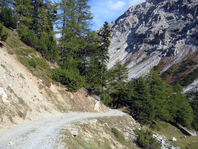 Našťastie všetko dobre dopadlo. Vynáram sa z lesa a napájam na asfaltku kúsok pred dedinou. Samozrejme, vedľa cesty vedie cyklistický chodník - nuž som vo Švajci... Vchádzam do dedinky a vyzerám odbočku na Umbrailpas. Vzápätí ju zbadám, v rýchlosti vyberiem ostrú zákrutu, a hneď zostra dokopca. Na záver celodennej túry ma čaká asi 1400 v. m. stúpania. No pekne som si navaril, len čo je pravda. Pozerám na čas: je tesne pred piatou a o ôsmej je tma.