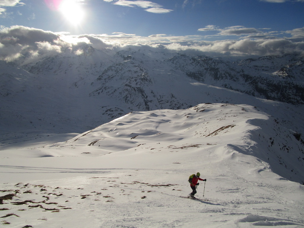 Výhľady úžasné, desiatky kopcov, niektoré aj významné, na všetky strany. Zjazd v tej kôre nestál za nič, išlo len o to zdravý dôjsť dole. Aj o tom je skialp, nie len o ujúkaní v prašane.