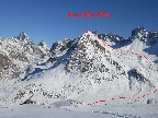 Odtiaľto stúpame po hrebienku, kde sme v bezpeží pred lavínami a pomedzi vysoké skalné mužíky sa mierne traverzujúc vľavo dostaneme ku záverečnému výšvihu. Na lyžiach sa dá vystúpiť až na vrchol pýšiaci sa úžasnými výhľadmi. Návrat tou istou trasou.