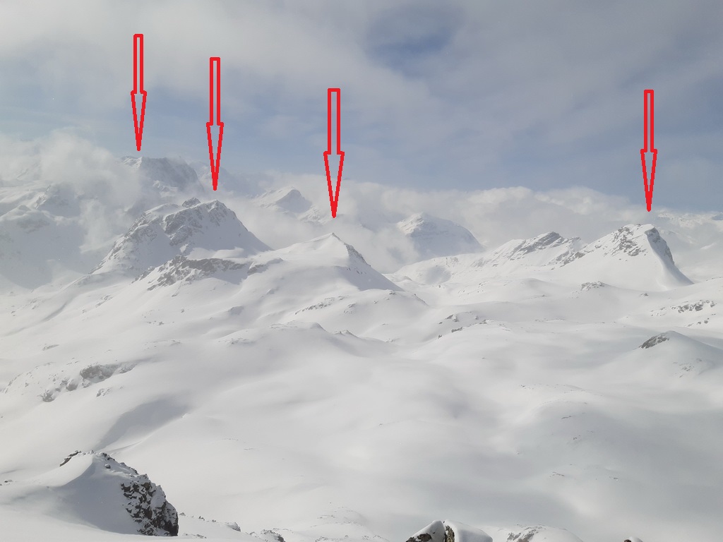 Pod vrcholom stretávam skupinku. Prví ľudia dnes. Vyzerá to na vodcu s partiou. Na vrchole míňam dve dvojky. Idú z druhej strany. Nadávajú na vietor a vraj museli šliapať stopu čerstvým snehom. A ty kamže tak rýchlo? Pýtajú sa. Hmm no toto je dnes šiesty kopec, ďalší bude tamten: ukazujem na