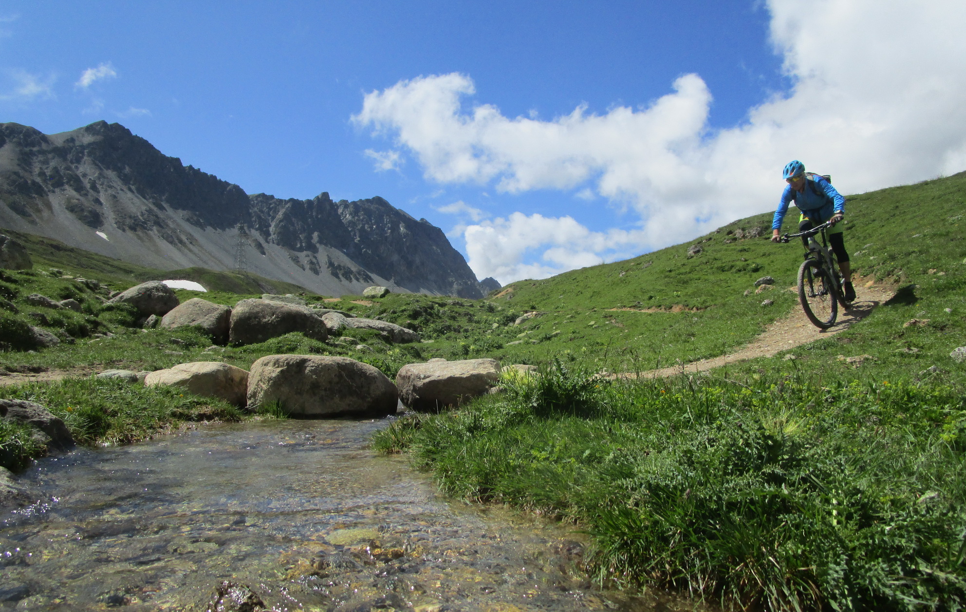 Keď sa chce človek pustiť dole tak sa musí najskôr dostať hore na štart trailu. Ja som na to použil asfaltové stúpanie z La Punt vedúce cez sedlo Albula. V sedle sa dá občerstviť, je tu dokonca reštaurácia či možnosť ubytovania. Albulapass je otvorený iba cez leto, v zime je zavretý. Ale v lete sa zo sedla dá napríklad vyrážať aj na pekné pešie túry.