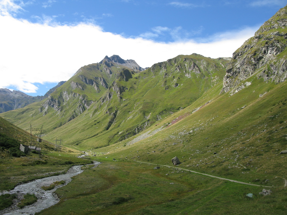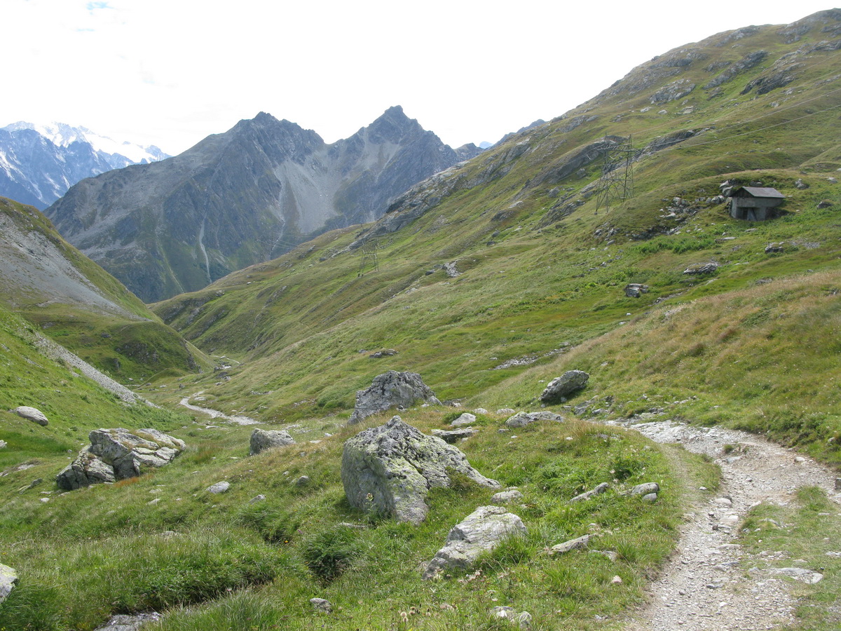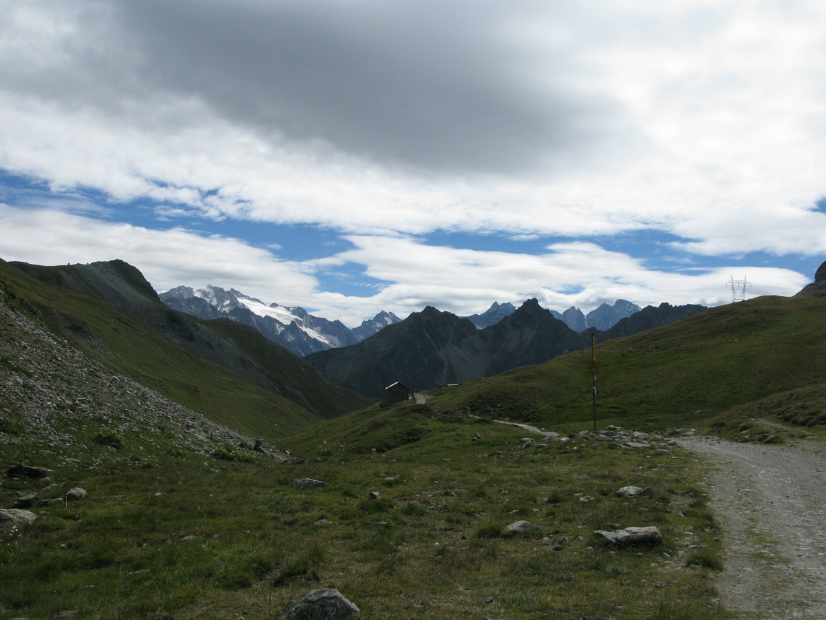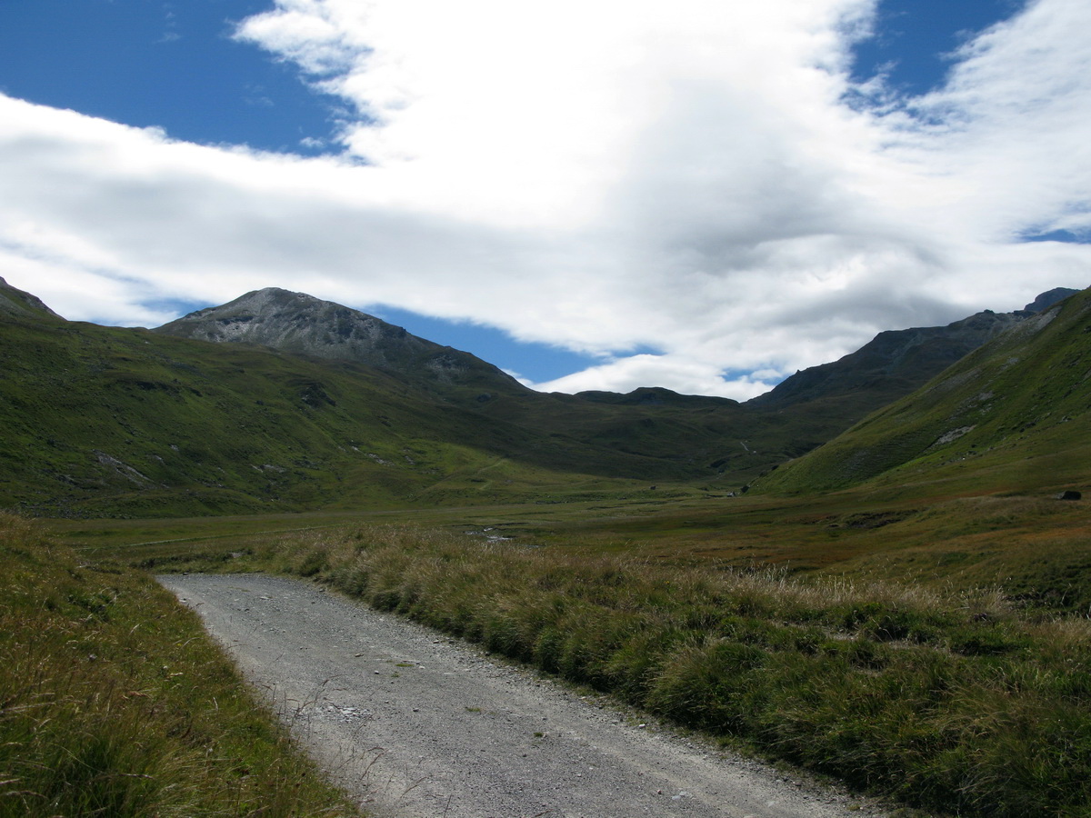 Auto som zaparkoval na prvom odpočívadle nad Silvaplanou. Takto som sa vyhol všetkým tým plateným parkoviskám v údolí. Po asfaltovej rozcvičke nasledoval asfaltový zjazd proti studenému vetru až po dedinku Bivio (1769m). Tu majú dokonca menšie lyžiarske stredisko, práve popod vleky začalo stúpanie na Septimer. Široká štrková cesta dokonale vyklčovanými pasienkami. Tento prechod cez hory používali už starí Rimania. Počas stúpania som rozmýšľal, či si dnes vôbec zajazdím. "Čo ak bude podobná cesta aj do druhej strany?!" obával som sa.