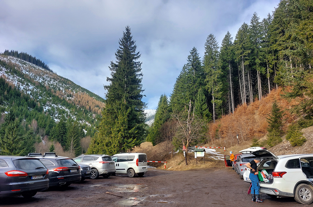 Možno posledná moja pásovačka v sezóne, lebo začiatkom marca už treba za snehom chodiť dosť ďaleko a vysoko. Verejné spoje takmer nepoužiteľné a aj miesta, kde sa dá naskočiť do lyží (takmer) od parkoviska, sa míňajú rýchlejšie ako teplé rožky. A už sa dá aj inak v lesoch vybúriť. Zároveň ma však už dlho láka Starobocianska dolina, teda najmä prístup cez ňu, cez Bocianske a Kumštové sedlo na hrebeň Nízkych Tatier. Ústie má vysoko, vedie na západ, od severu je pritienená, to by malo íííííííísť! Aj tak je a keď padla dohoda a oplatilo sa auto štartovať, v nedeľu ráno na MDŽ vyskakujeme do jemne odmrznutého blatka pred rampou, kde už sa pomaly zapĺňa malé parkovištiatko. Tak pre 15 áut max, keby niečo... Znamenie, že si sem treba ráno privstať, nie je to Žiarska. Prvých ani nie 400 m s lyžami na chrbte, lebo nevieme, kde ich zapneme, ale zapíname už po chvíli. Dole sme potom zlyžovali ešte dokonca o kúsok nižšie, k mostíku 300 m nad parkoviskom. Zvyšok medzi tým bol takýto: