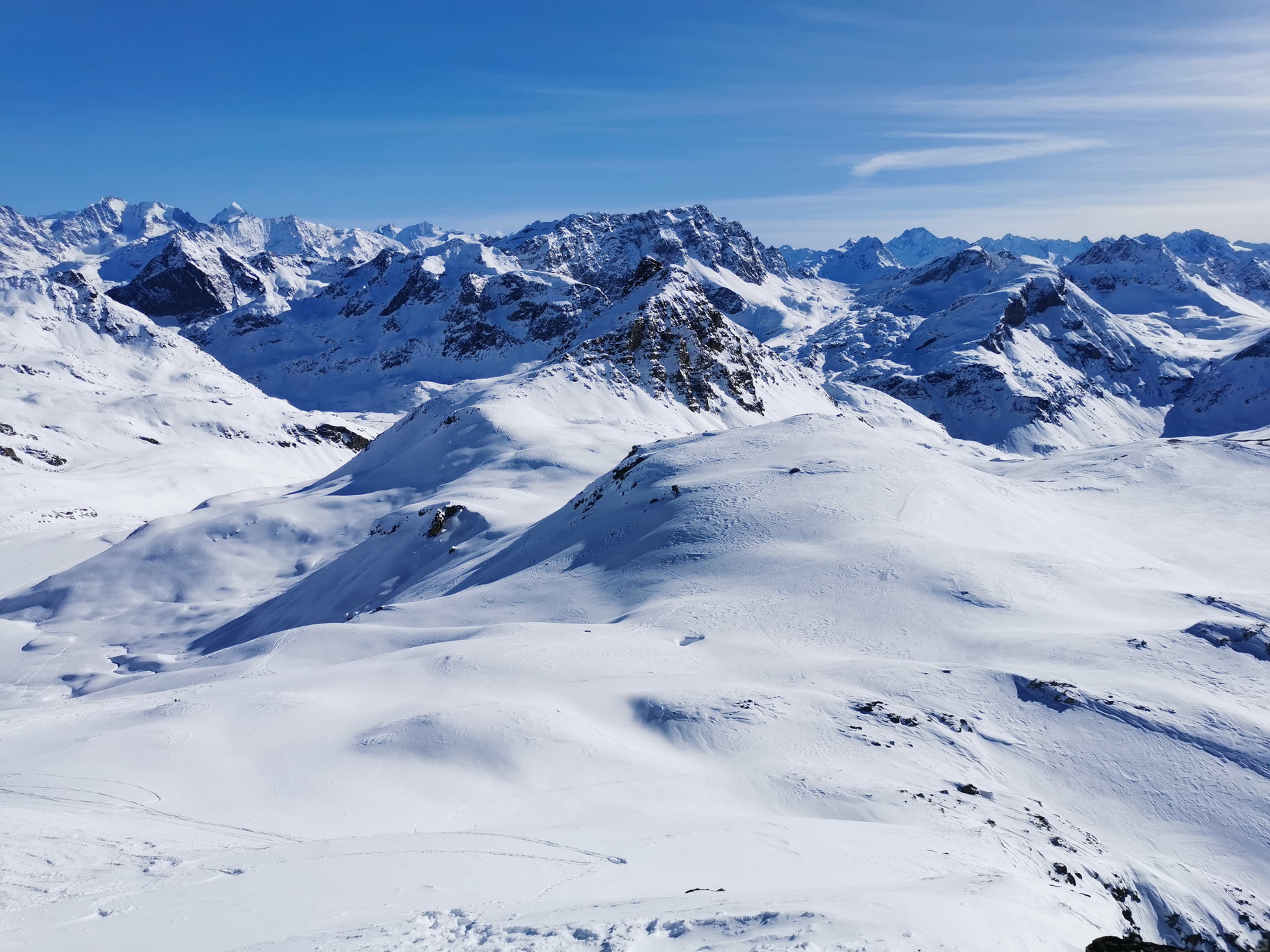 Kôli snehovej biede som sa prvý raz túto zimu vybral na Julierpass až 13.2. Je pekné počasie a celý deň aj zostane. Parkujem v smere od Silvaplany na prvom parkovisku, ktoré máme vďaka obci Silvaplana k dispozícii zadarmo. Na parkovisku sú iba dve autá a keď začnem šlapať smer Valletta da Guglia nevidím žiadnu čerstvú stopu. Včerajšie mierne sneženie so silným vetrom spravilo svoje, stopy sú zafúkané.
