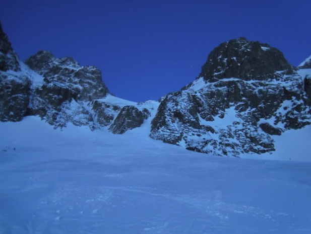 Dopijeme posledné dúšky vody a Elko vyrazí ťahať stopu, tak ako po celý deň. Posledný krok je ten najťažší a to platí do bodky. Prebojovať sa cez prevej stojí obrovské množstvo síl, nohy nedržia, cepín v ruke hľadá nejakú oporu, ale márne. Stojím 10 metrov pod vrškom, držím sa vytŕčajúceho kúska statického lana a pokorne prijímam všetok sneh, ktorý Elko v snahe preraziť na mňa sype. Po hodnej chvíli sa mu to podarí a pomocou slučky ma posledný meter vytiahne úplne vyčerpaného hore. Je už tma, zapíname čelovky a konečne využijeme lano, ktoré celý deň ťahám zo sebou. Pár metrov pod bránkou nájdeme cez skalu prehodenú slučku, pridám ešte jednu, cvaknem lano a zlaníme posledným skalným prahom. To už nám oproti z chaty blikajú čelovky kamarátov a vieme, že sme to zvládli.