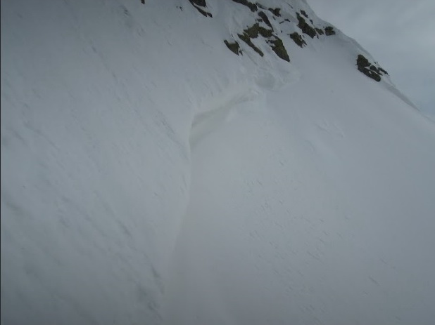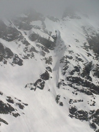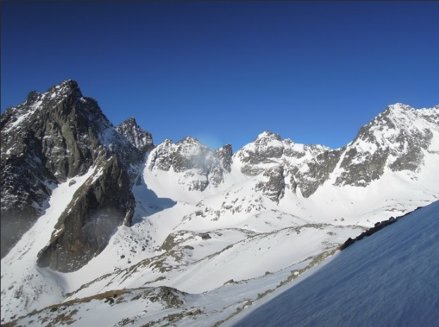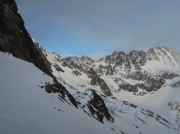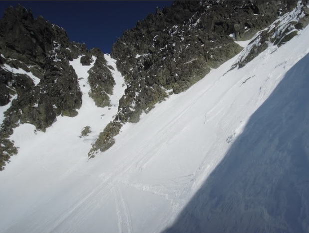 14:15. Obavy zo zostupu vystrieda radosť z lyžovania. Aďa dáva pravdepodovne ženský prvozjazd a my s Elkom prvozjazd tejto zimy. Odmäknutý firn nám umožní lyžovať dole smerom do Komarnického rokle. Vskutku parádny traverz Gerlachu. Pár výškových metrov do Východného Batizovského sedla a vari máme to najhoršie už za sebou. Ponad kamenné polia, povyše Pastrnákovej priehyby a Kostolíka v ústrety zaslúženej prestávke.