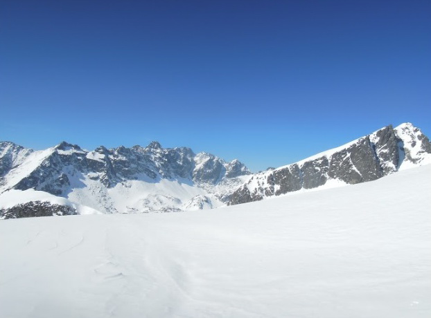 Traverz do sedielka v hrebeni Drobnej veže a lyžovačka jemne nafúkaným snehom sú za odmenu. Prah v spodnej časti púšta na lyžiach, nalepíme pásy a popod Priečne sedlo nastúpame pár metrov, aby sme mohli lyžovať Streleckými poliami ku Zbojničke. Doplníme tekutiny, posilníme sa polievkou a hurá do Studeného sedla.