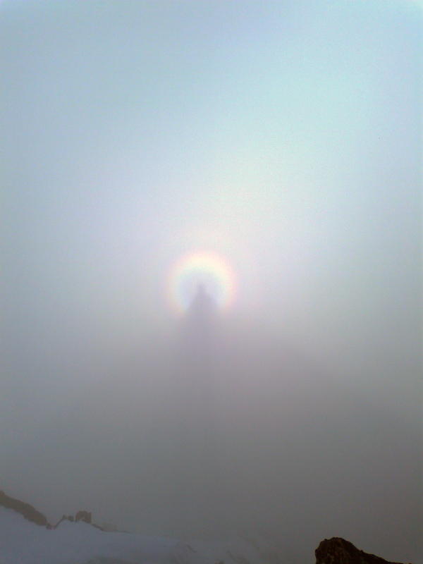 To že práve stúpam na vrchol Vysokej, že teda stúpam takpovediac po vlastnom sne, sa dozvedám v polovici cesty k nemu a tak stúpam opatrne :-) Tu niekde nechávame lyže a pokračujeme na mačkách. Hmlu sem-tam odfúkne, vidno modrú oblohu a výhľady okolo. Lyže sa vzďaľujú. Keď sa občas rozplynie hmla, vidím ich v diaľke ako zapichnuté malé paličky.